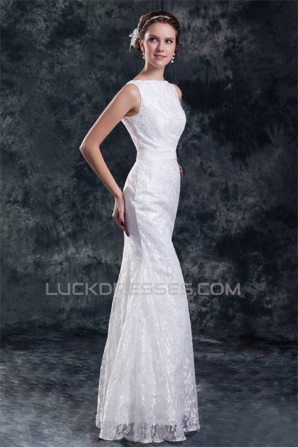 -50% Sleeveless Bateau Mermaid/Trumpet Satin Lace Sweet Wedding Dresses 2031319