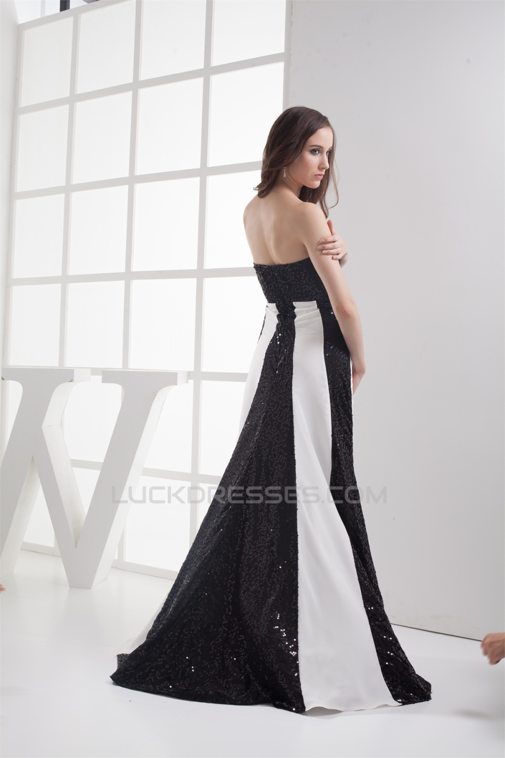 Sleeveless Bows A-Line Strapless Brush Sweep Train Sequins Prom Evening Formal Dresses 02020341