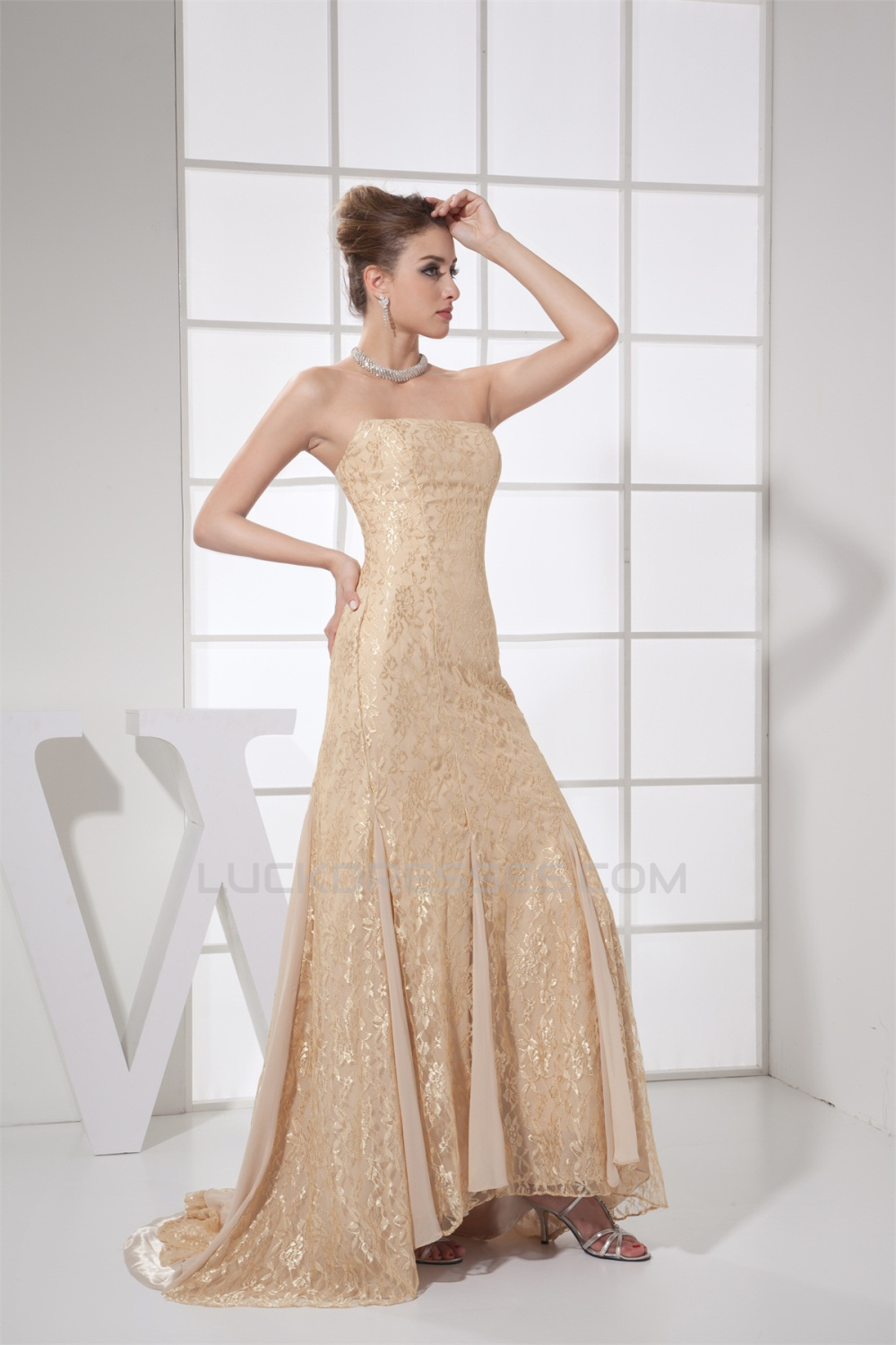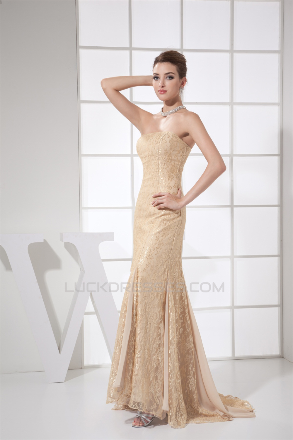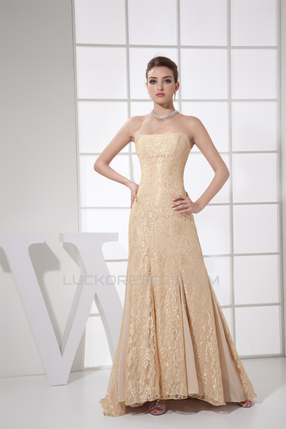 Sleeveless Chiffon Lace Long Prom/Formal Evening Dresses 02020348