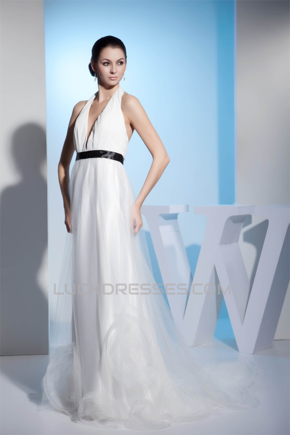 Sleeveless Halter Silk like Satin Fine Netting Best Wedding Dresses 2030370