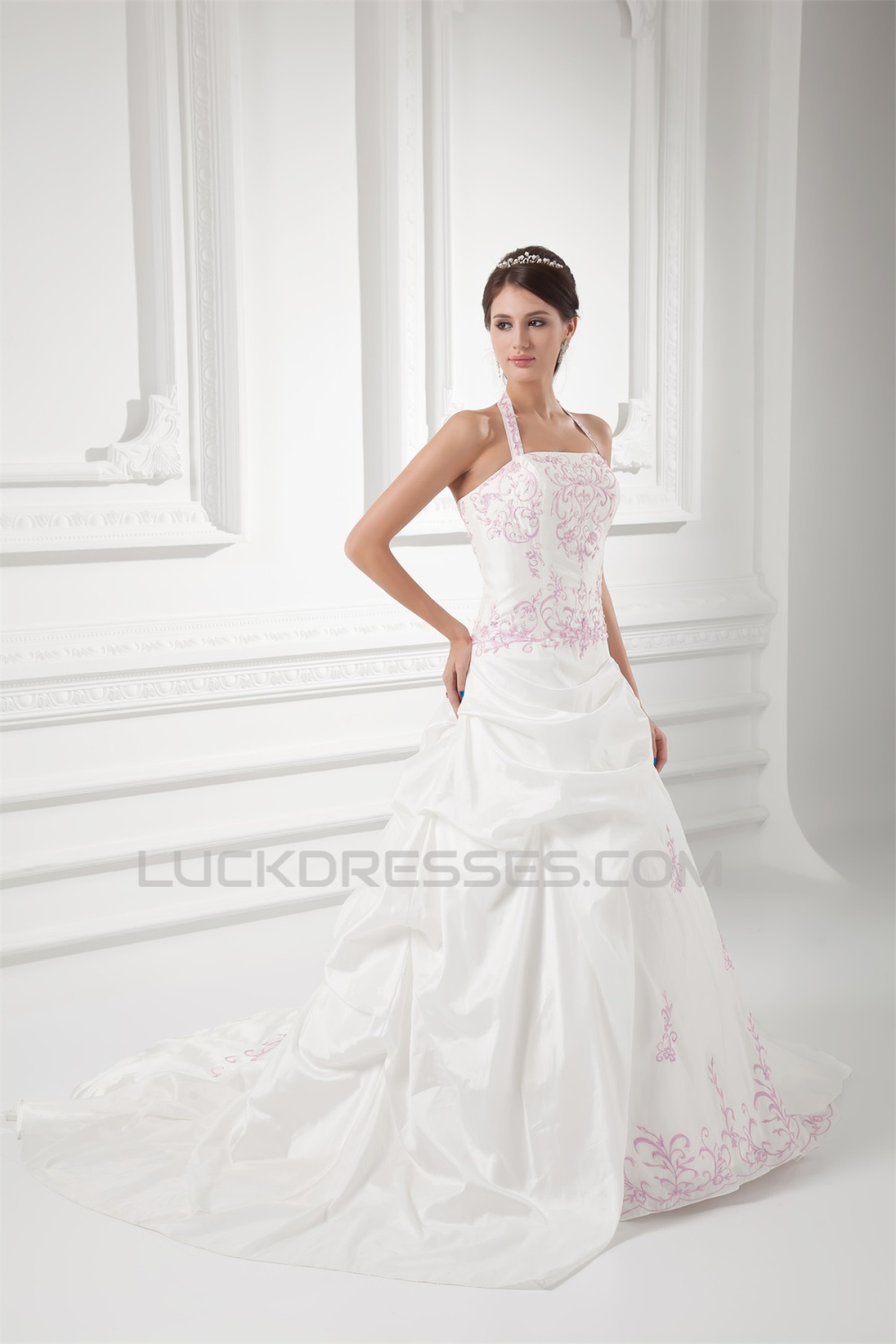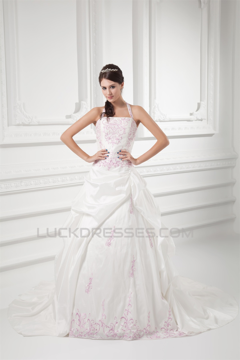 -50% Sleeveless Halter Taffeta Ball Gown Wedding Dresses 2031207