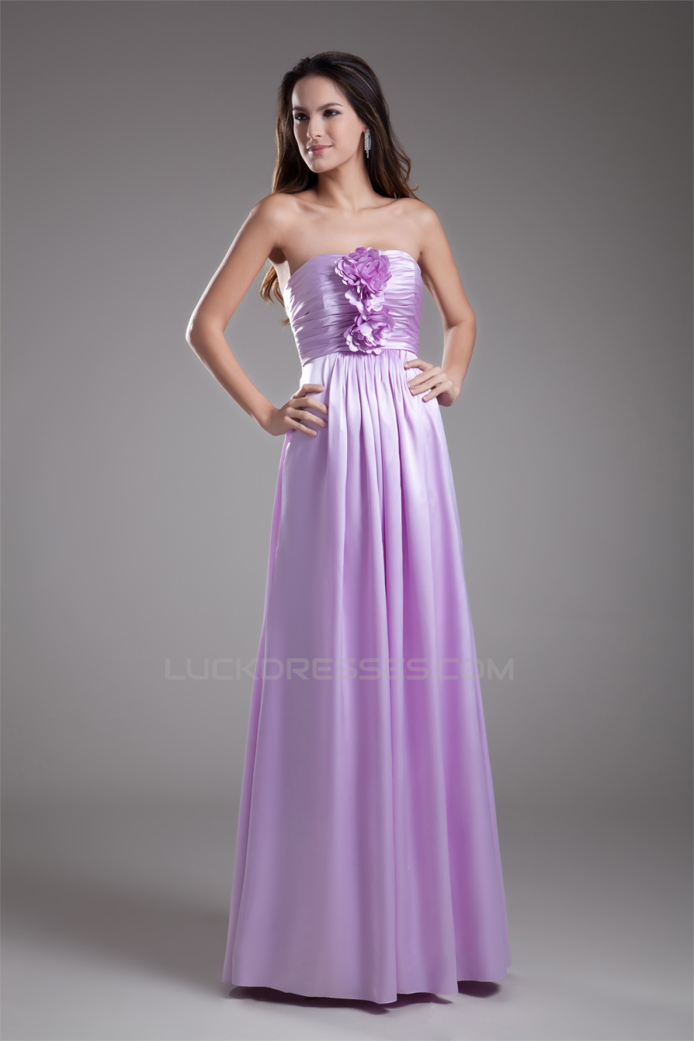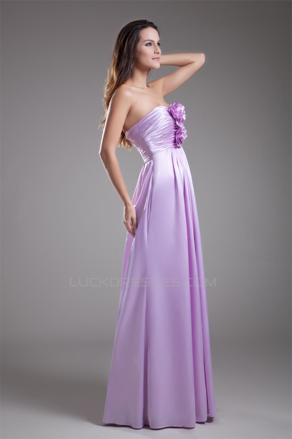 Sleeveless Handmade Flowers Elastic Woven Satin Bridesmaid Dresses 02010190