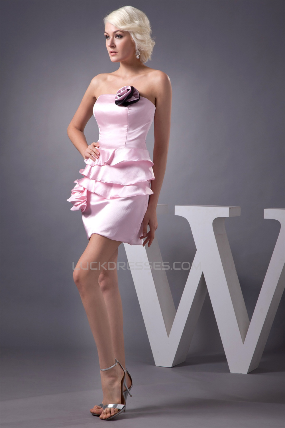 Sleeveless Handmade Flowers Short/Mini Pink Bridesmaid Dresses 02010436