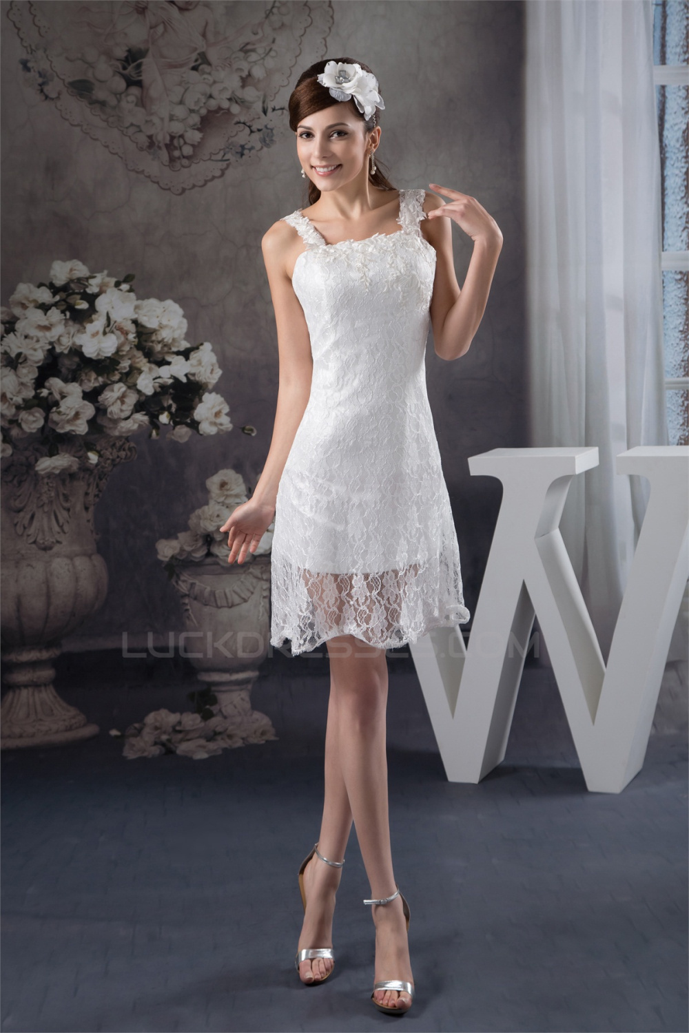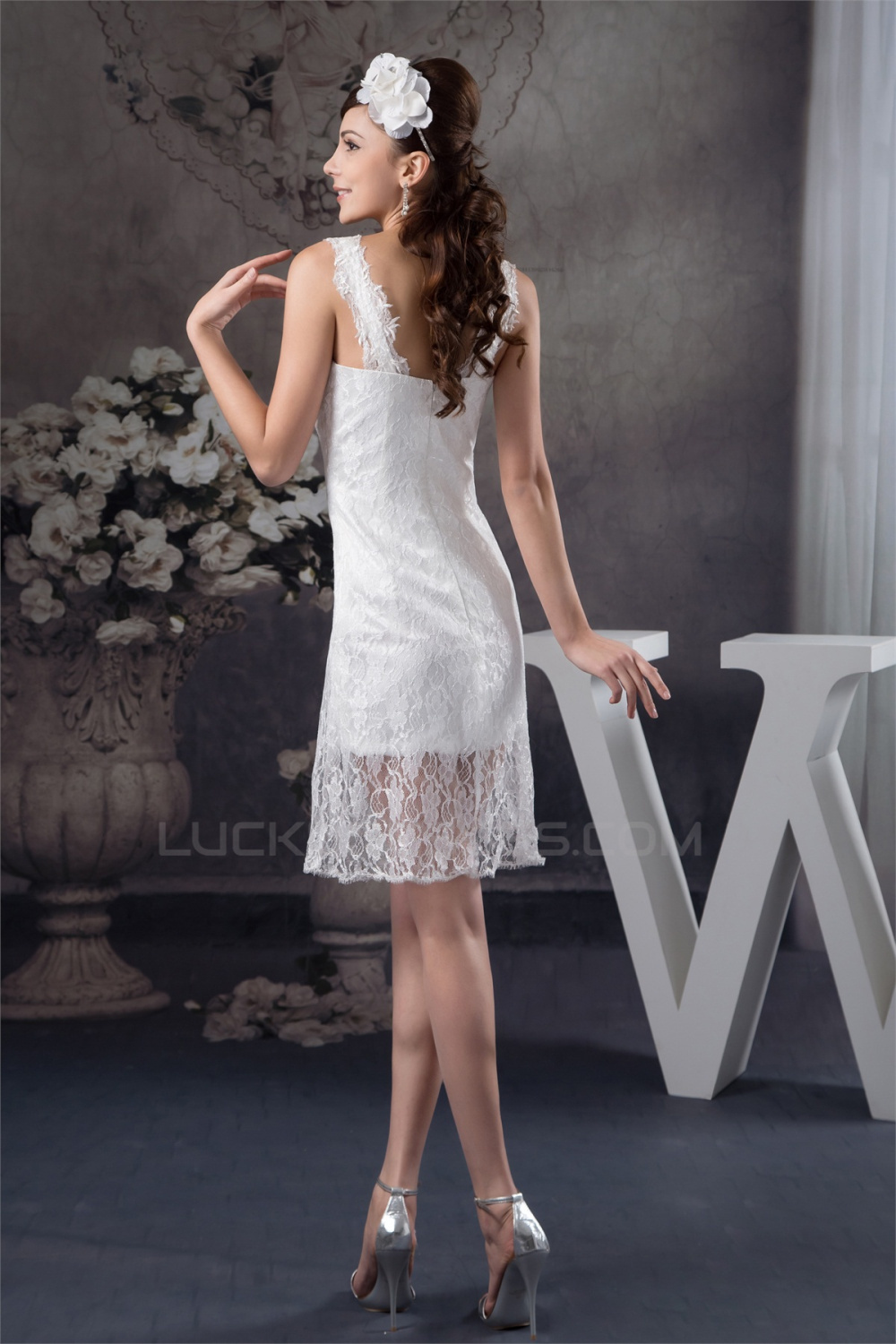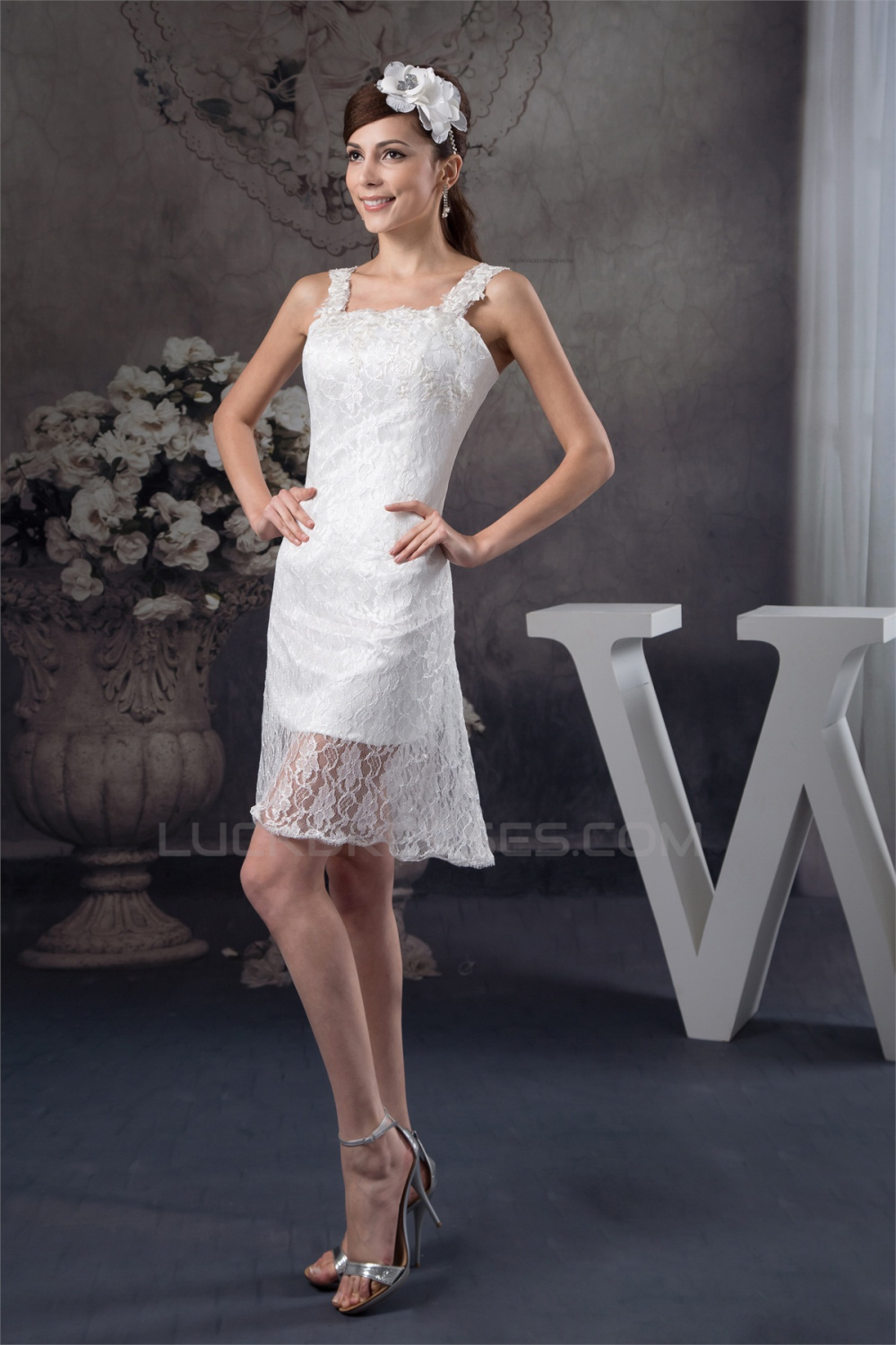 Sleeveless Lace Appliques Short Little White Short Wedding Dresses 2031531