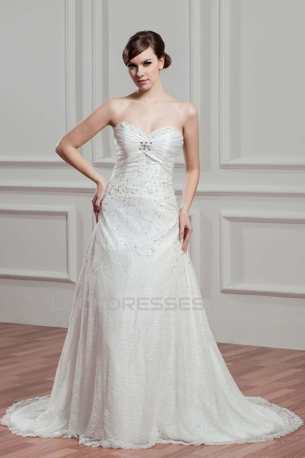Sleeveless Lace Taffeta Sweetheart A-Line Best Wedding Dresses 2030924