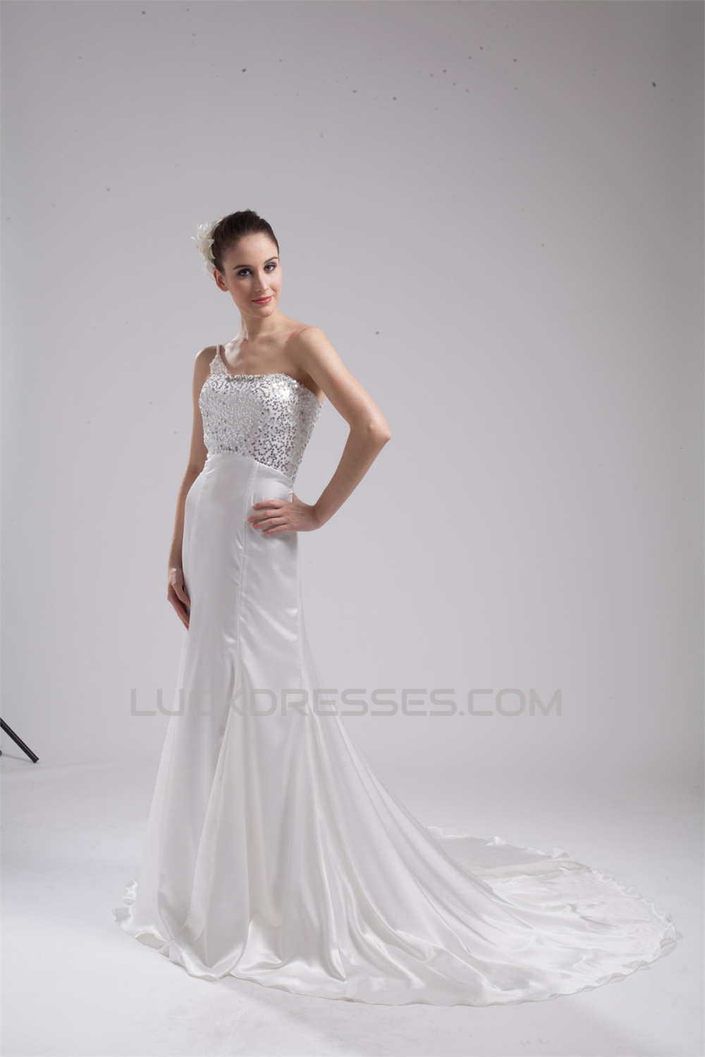 -50% Sleeveless Mermaid/Trumpet One-Shoulder Reception Wedding Dresses 2030373