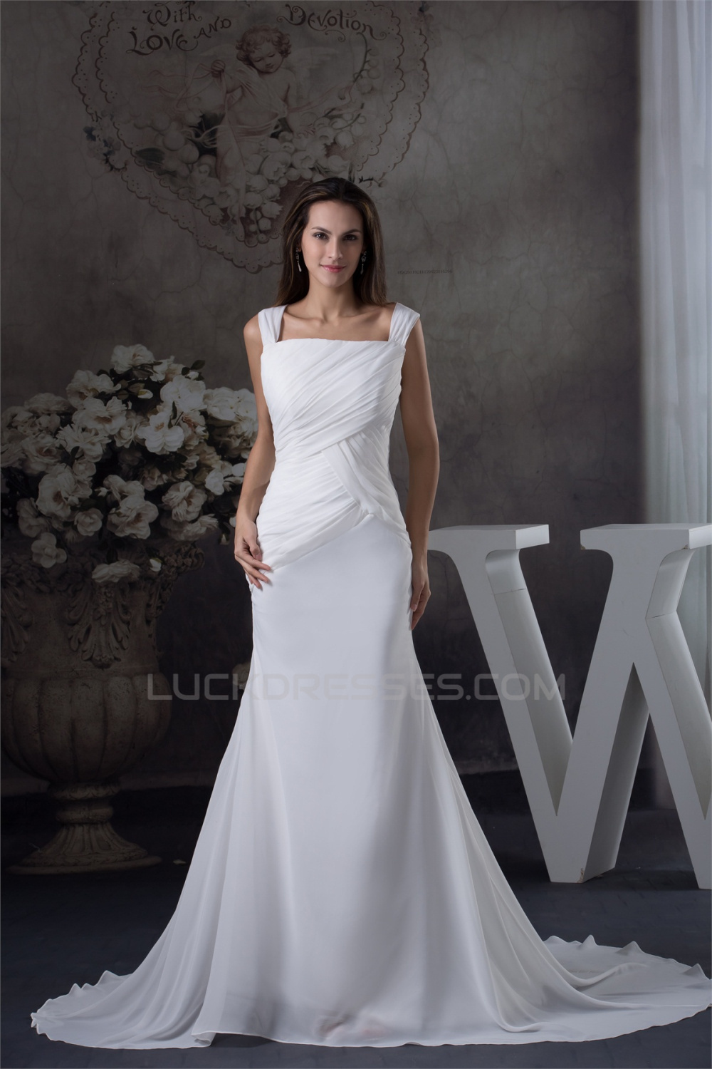 -50% Sleeveless Mermaid/Trumpet Spaghetti Straps Chiffon Sweet Wedding Dresses 2030376