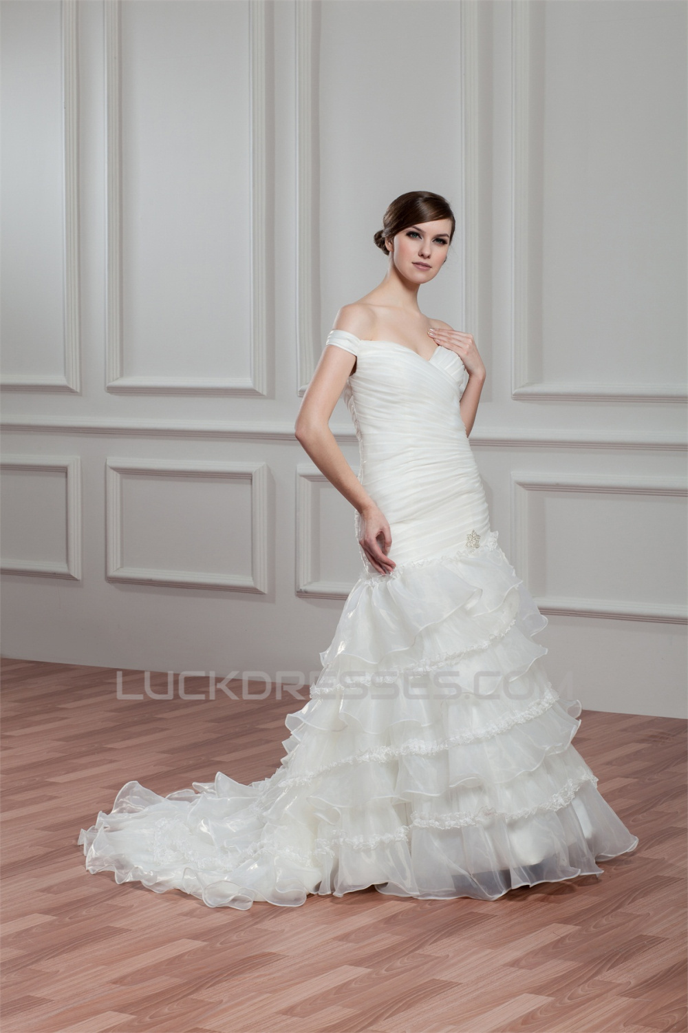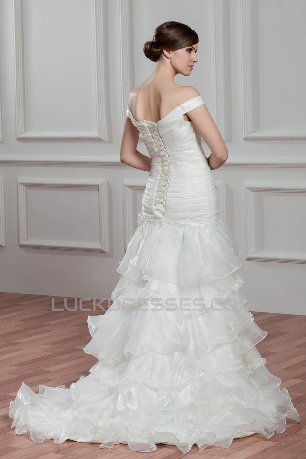 -50% Sleeveless Off-the-Shoulder A-Line Satin Organza Wedding Dresses 2030928