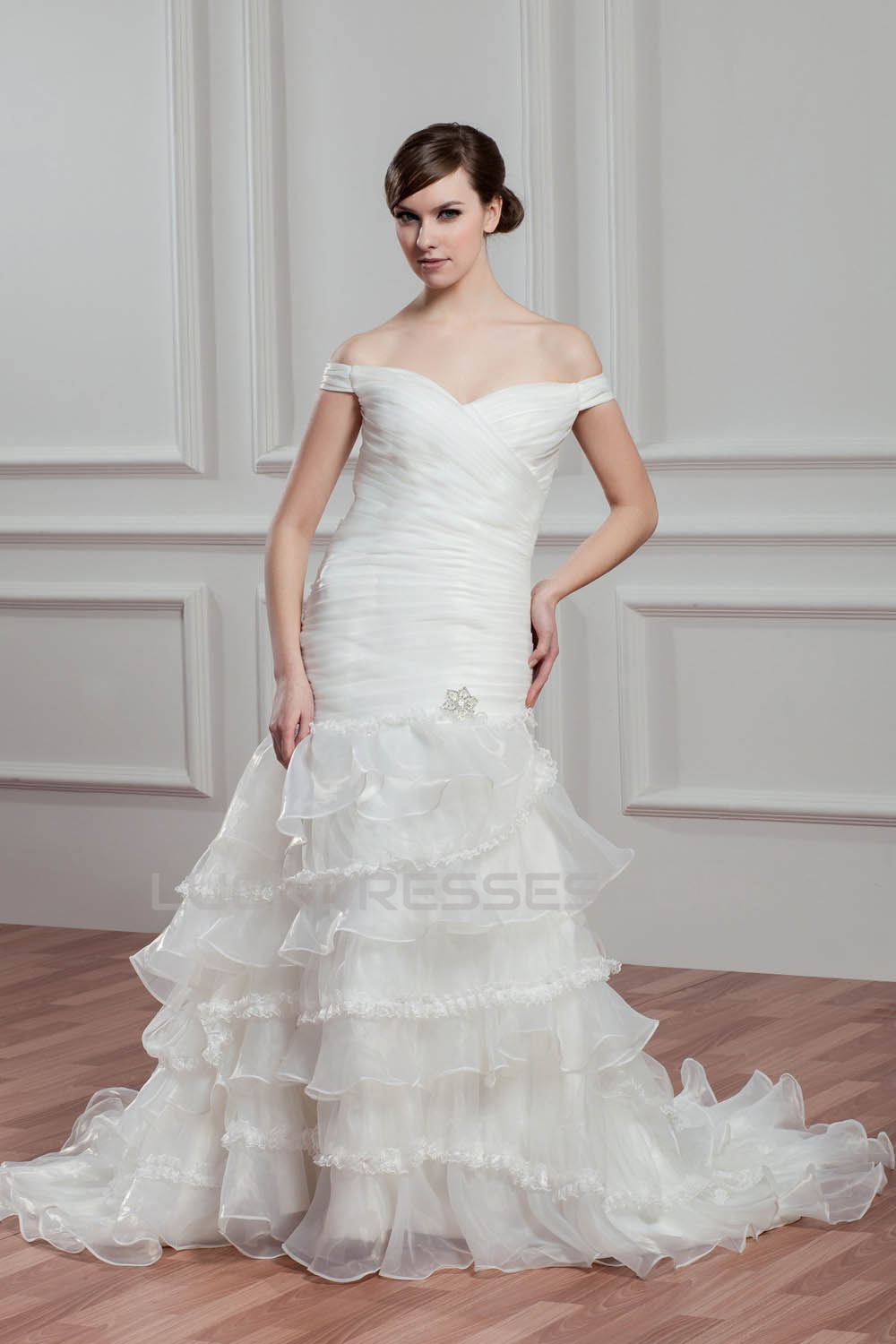 Sleeveless Off-the-Shoulder A-Line Satin Organza Wedding Dresses 2030928