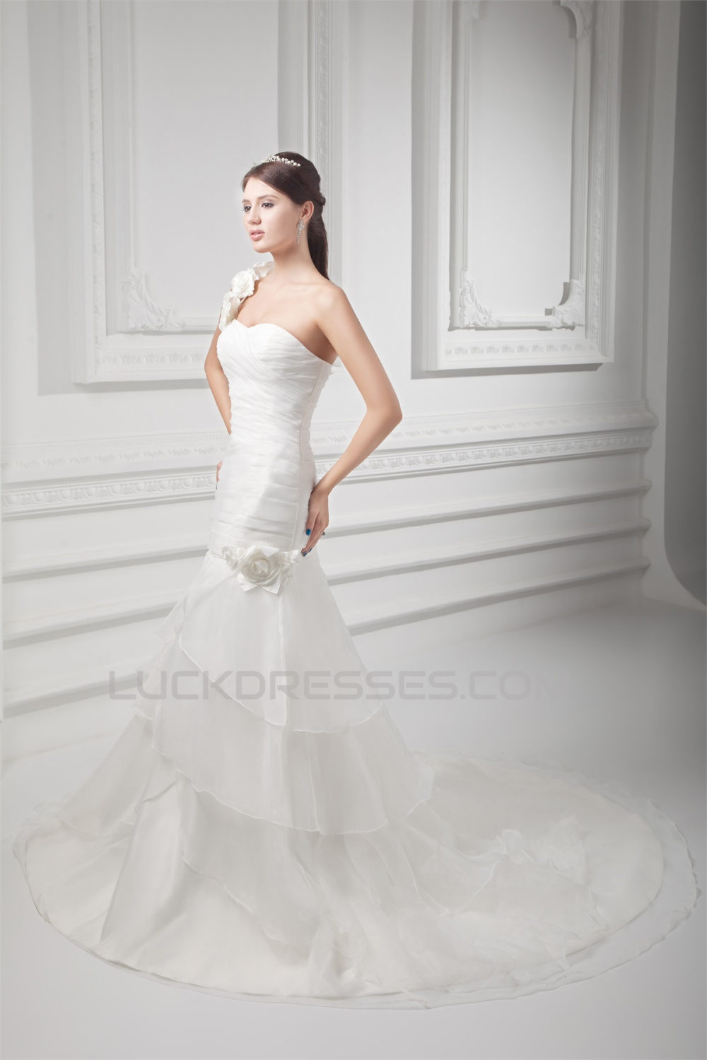 Sleeveless One-Shoulder A-Line Satin Organza Embellished Wedding Dresses 2031327
