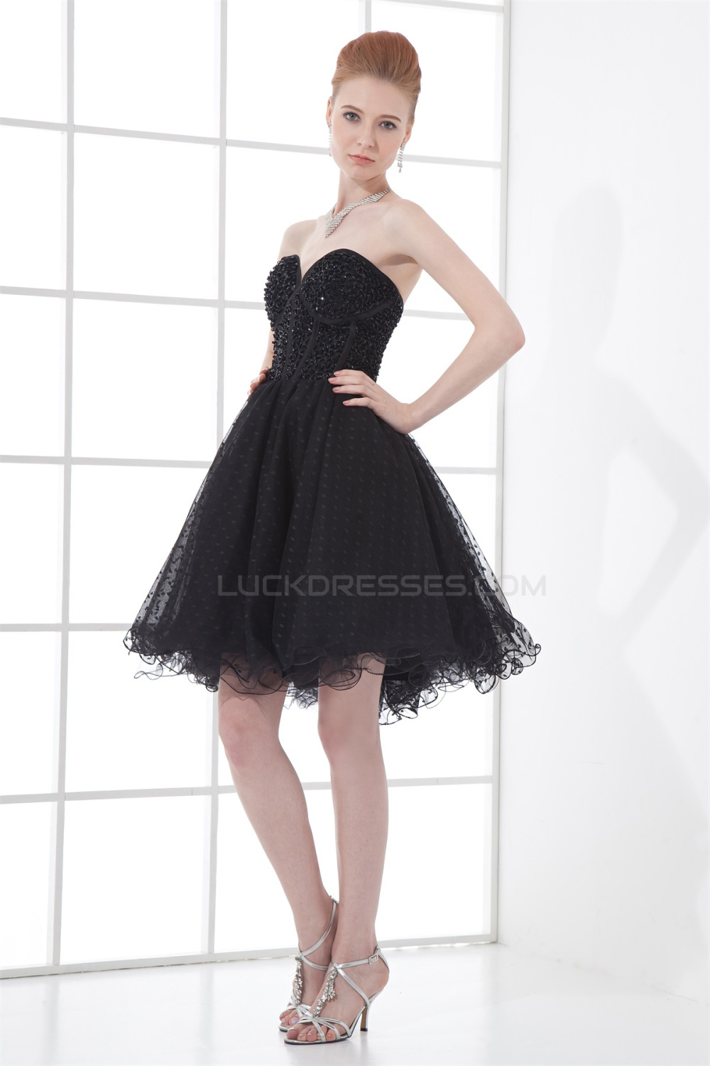 Sleeveless Satin Fine Netting Beading Short/Mini Little Black Dresses 02021530