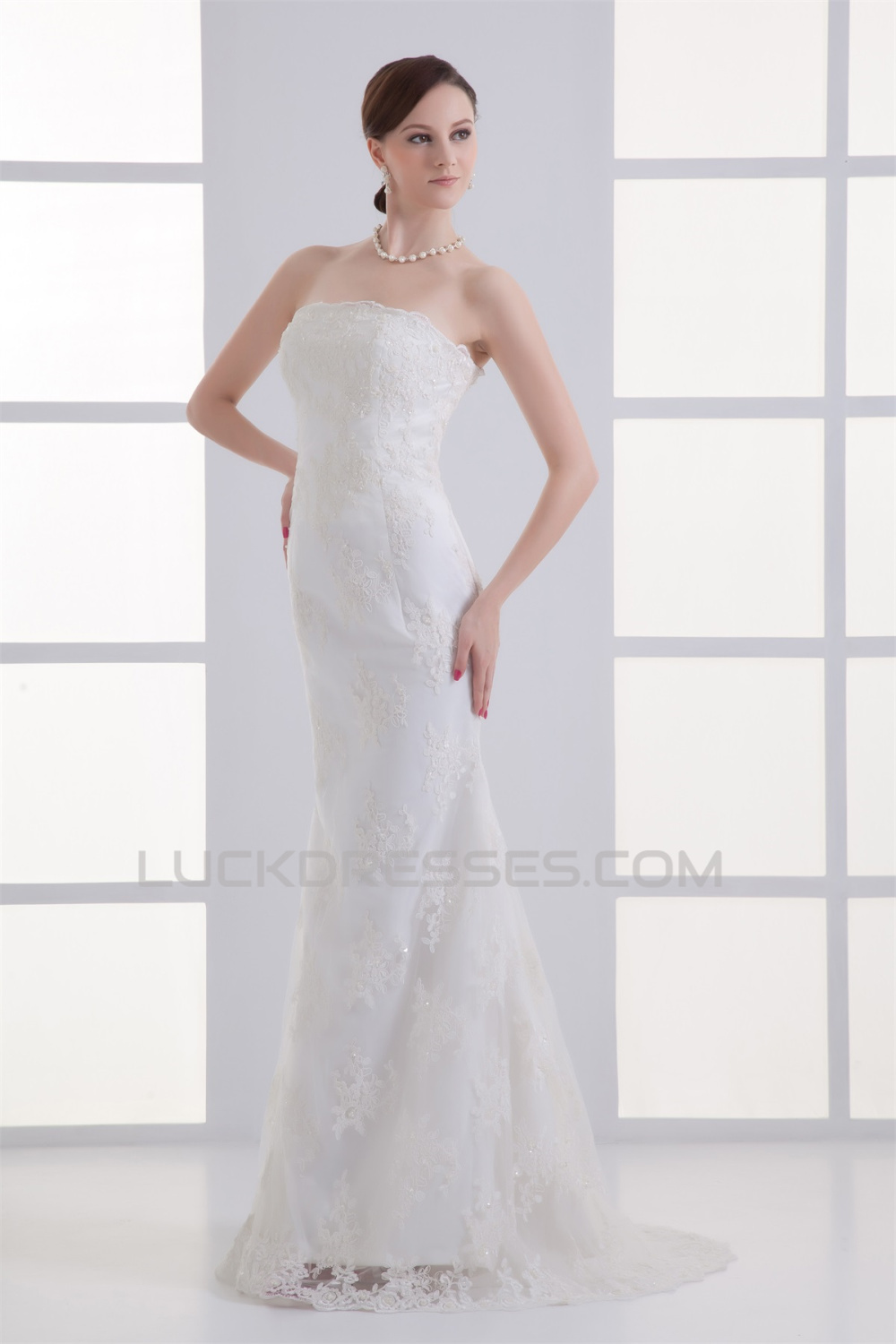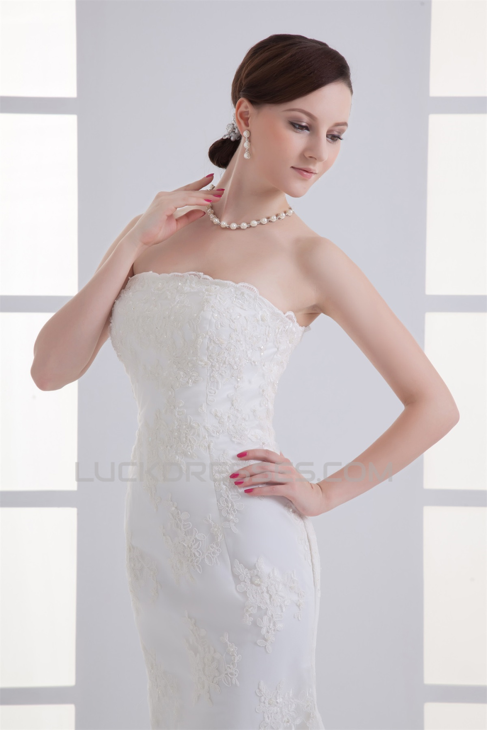 Sleeveless Satin Lace Mermaid/Trumpet Strapless Wedding Dresses 2031332