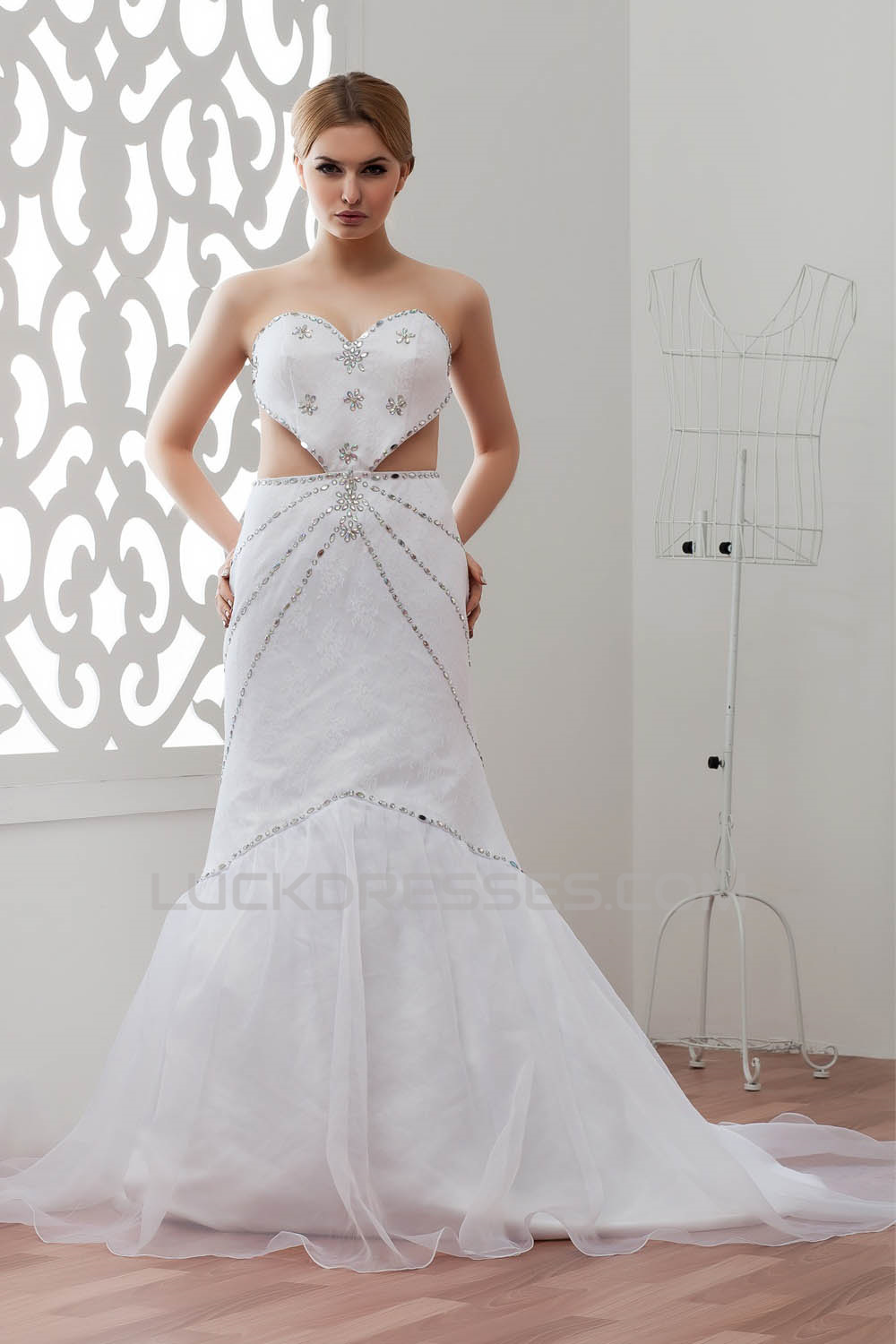 -50% Sleeveless Satin Lace Organza A-Line Sweetheart Beaded Wedding Dresses 2030939