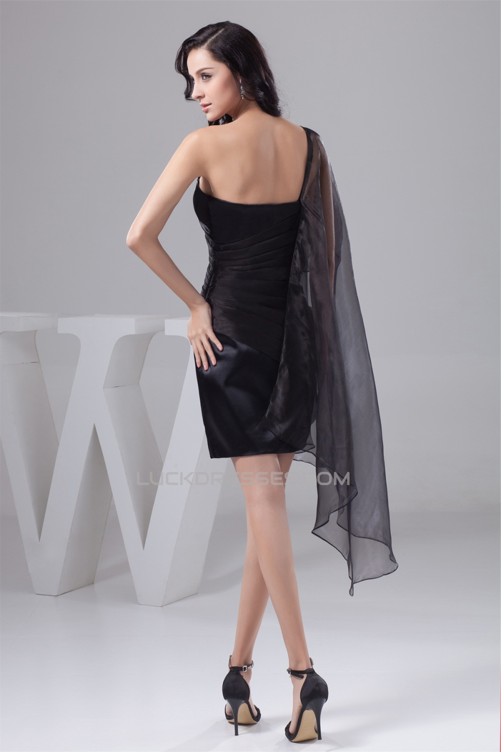 Sleeveless Satin Organza One-Shoulder Short/Mini Prom/Formal Evening Dresses 02021414