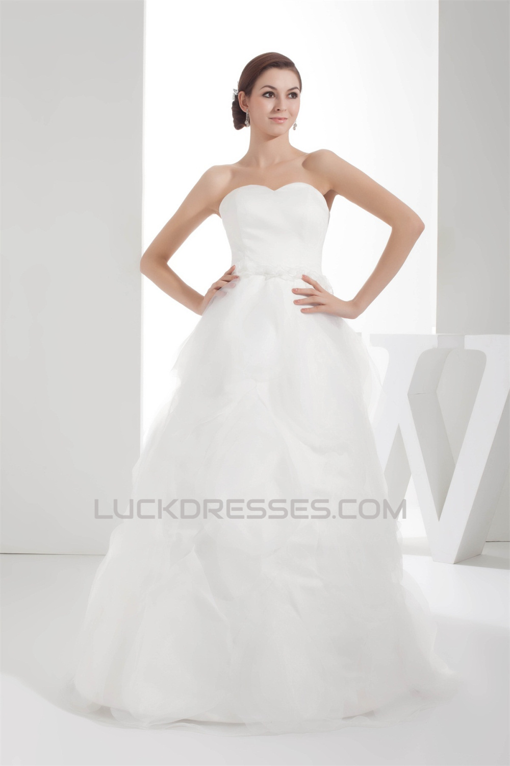 Sleeveless Satin Organza Sweetheart A-Line Sweet Wedding Dresses 2030397