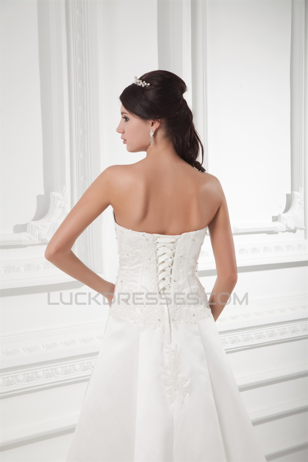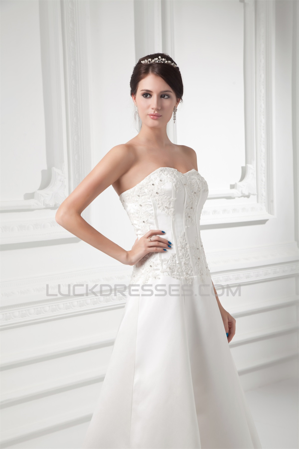 Sleeveless Satin Sweetheart A-Line Sweet Lace Wedding Dresses 2031163