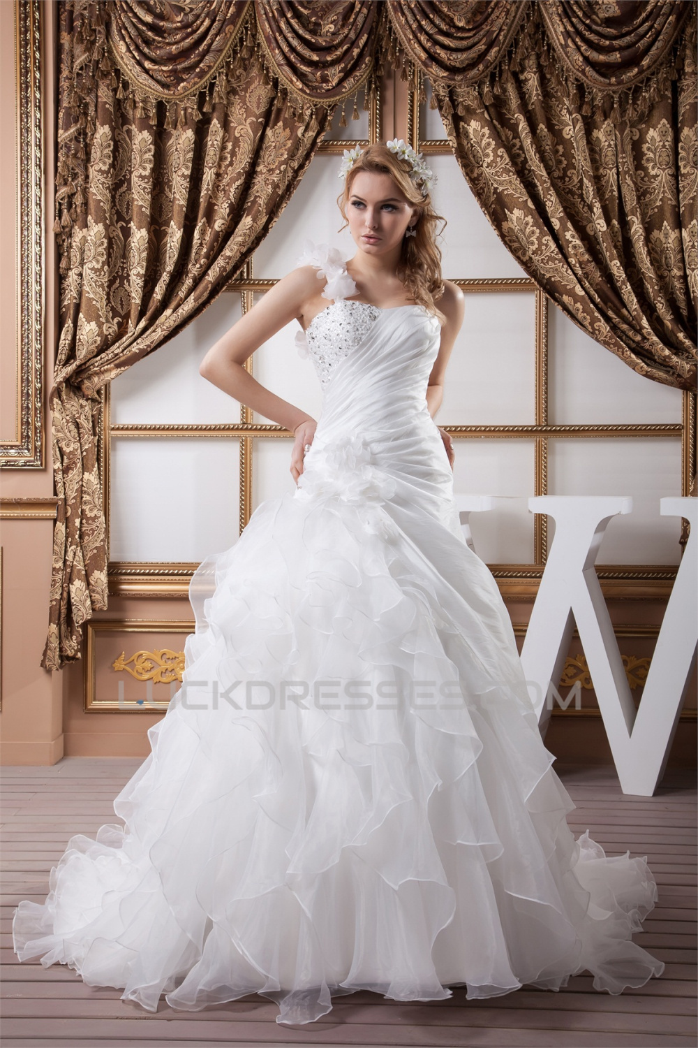 -50% Sleeveless Satin eaded Lace BA-Line One-Shoulder Wedding Dresses 2030933