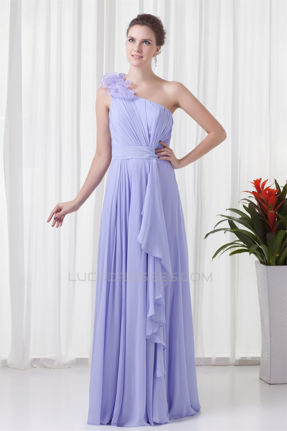Sleeveless Sheath/Column Floor-Length One-Shoulder Long Bridesmaid Dresses 02010196