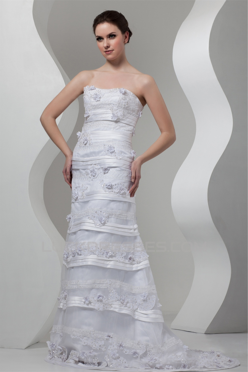 -50% Sleeveless Soft Sweetheart A-Line Satin Organza Embellished Wedding Dresses 2030956