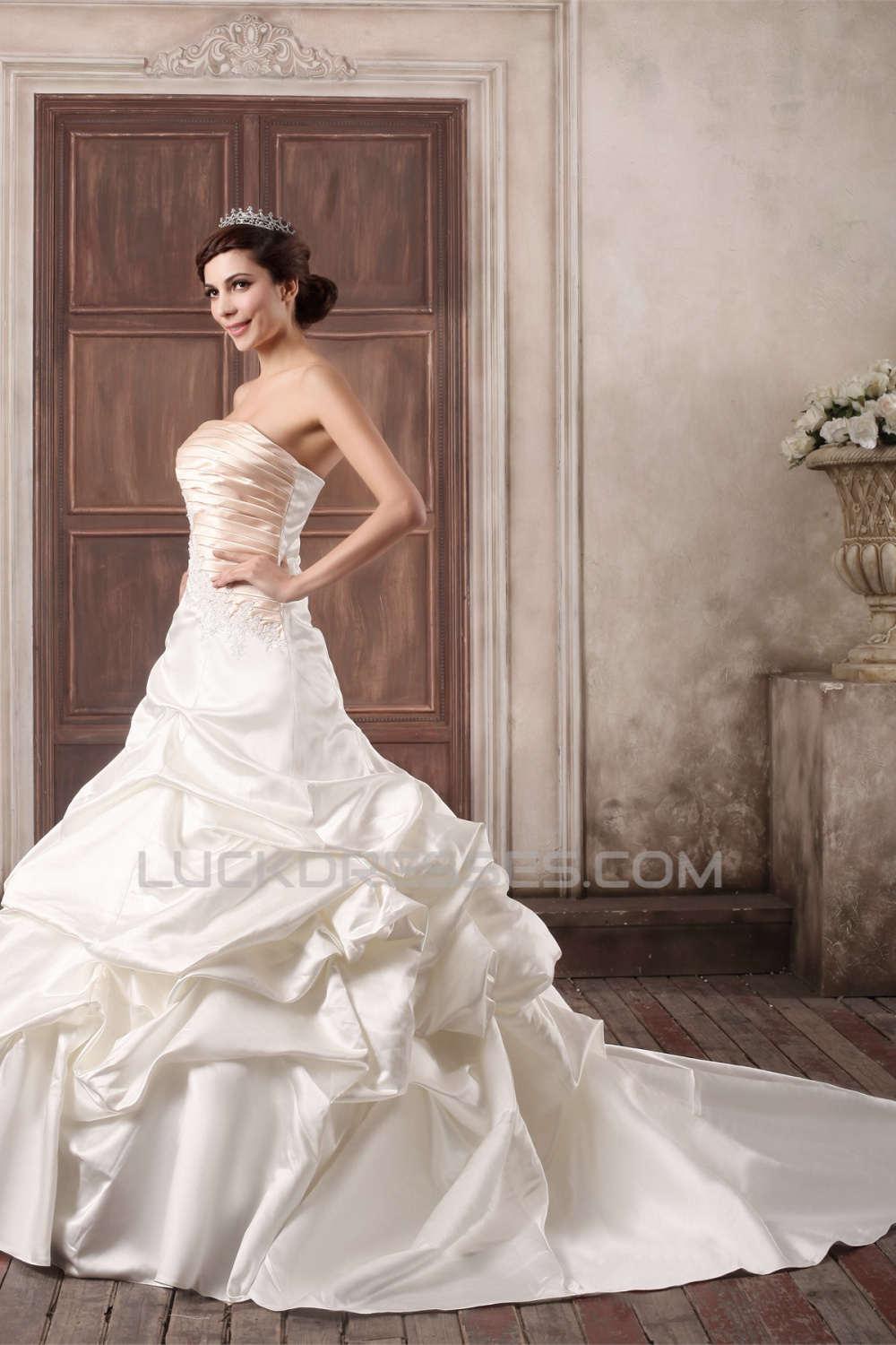 Sleeveless Strapless Satin Ball Gown Embellished Wedding Dresses 2031350