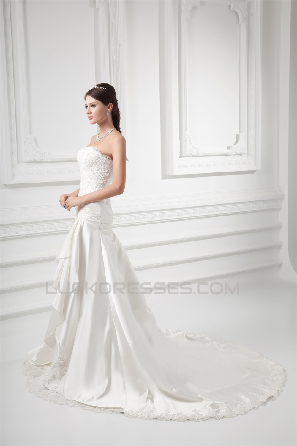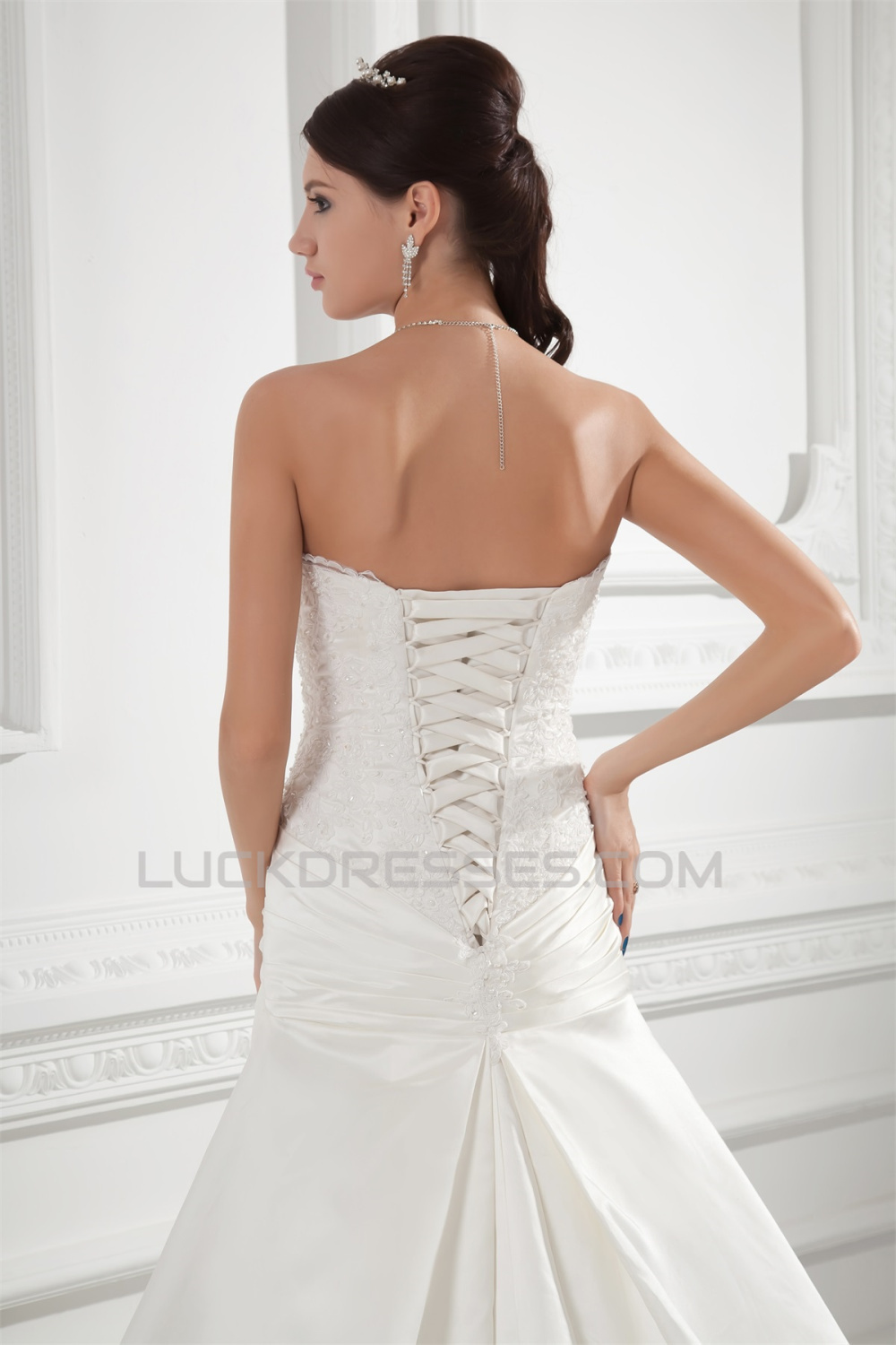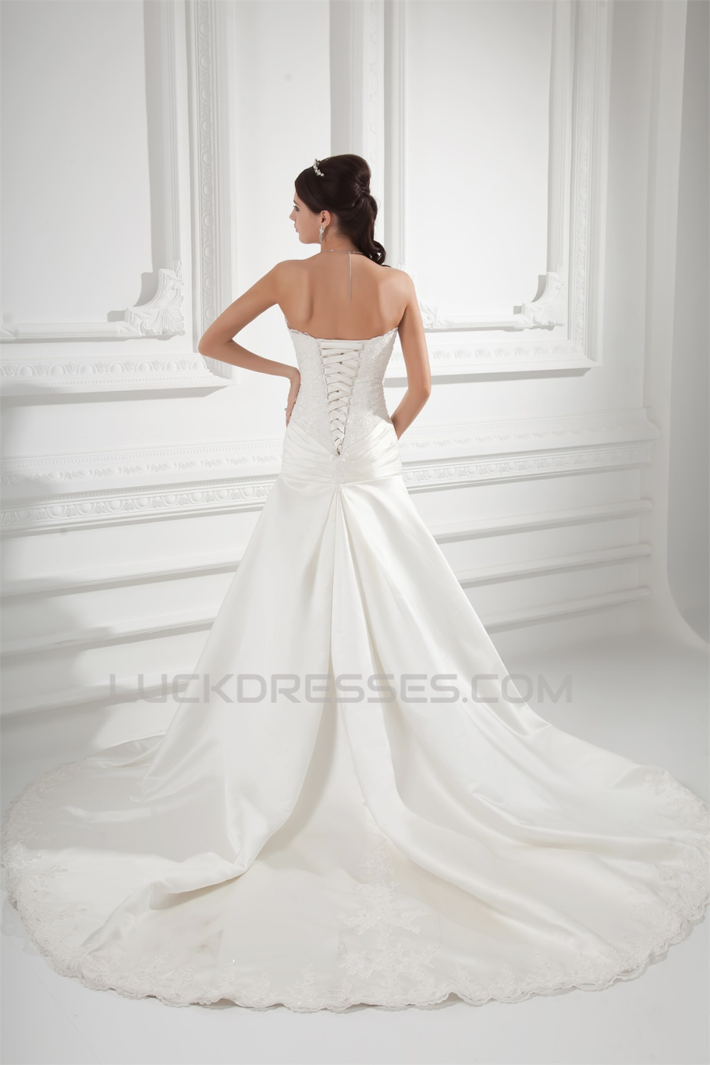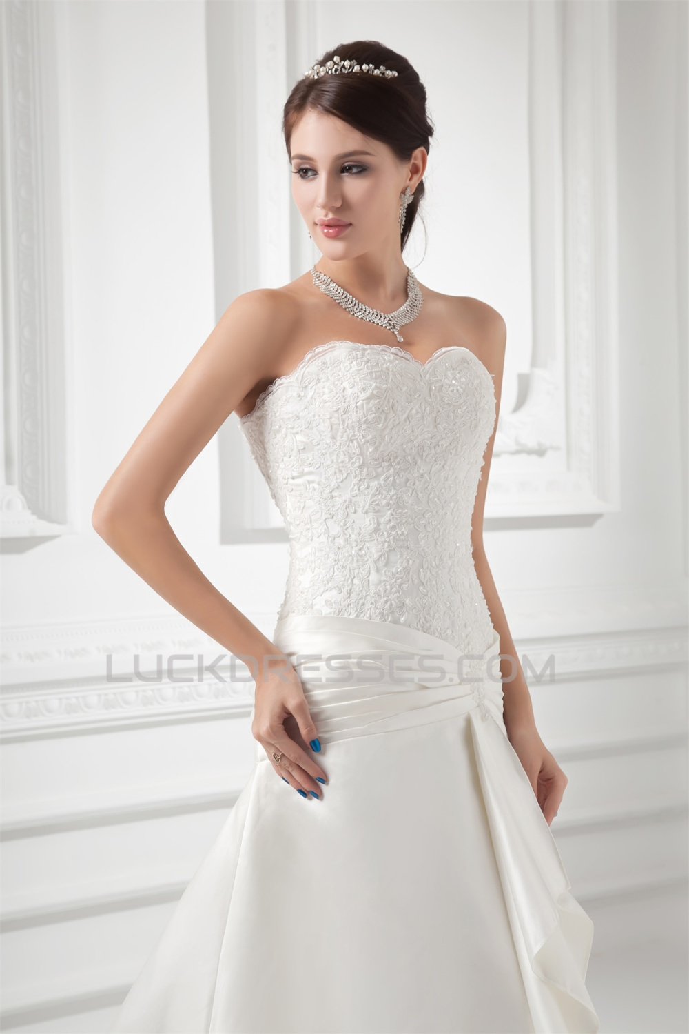 -50% Sleeveless Sweetheart A-Line Satin Lace Embellished Wedding Dresses 2031353