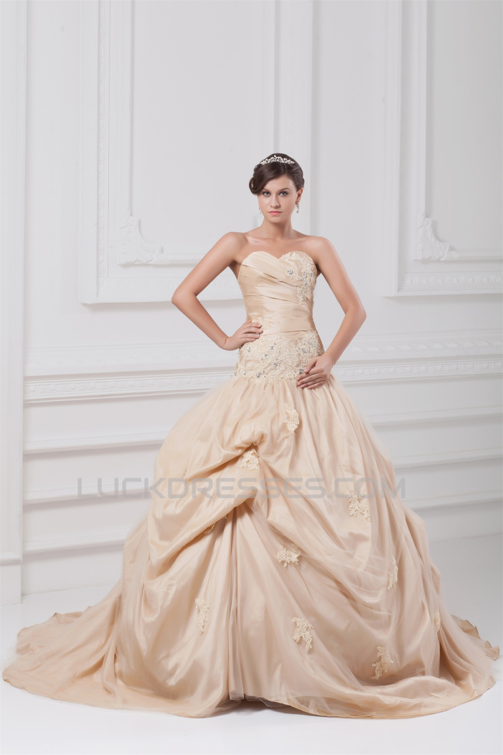 Sleeveless Sweetheart Ball Gown Taffeta Tulle Wedding Dresses 2031354