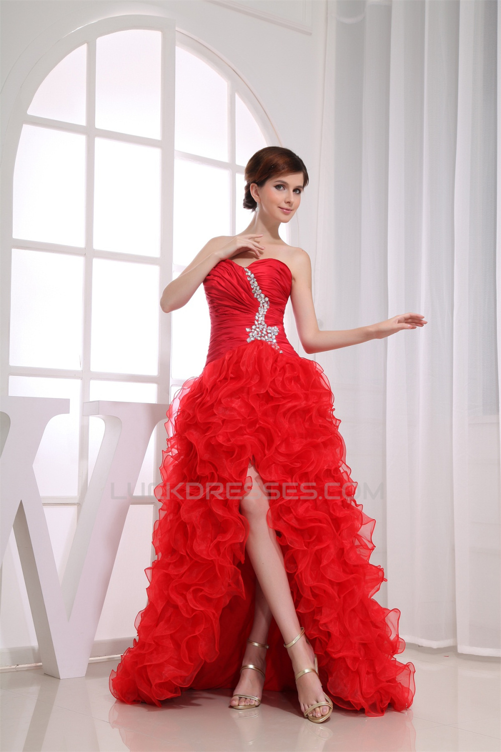 Sleeveless Sweetheart Beading Brush Sweep Train Long Red Prom/Formal Evening Dresses 02020386