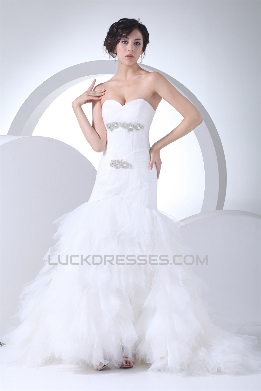 Sleeveless Sweetheart Mermaid/Trumpet Satin Fine Netting Sweet Wedding Dresses 2030425