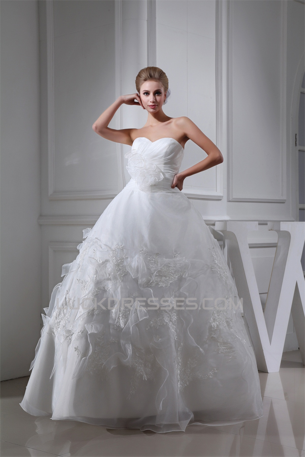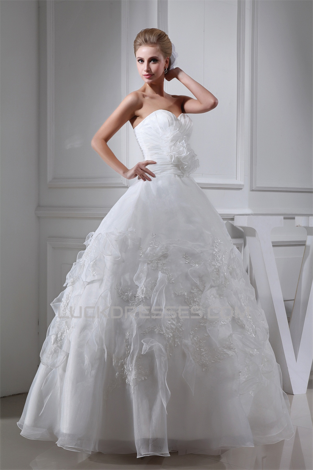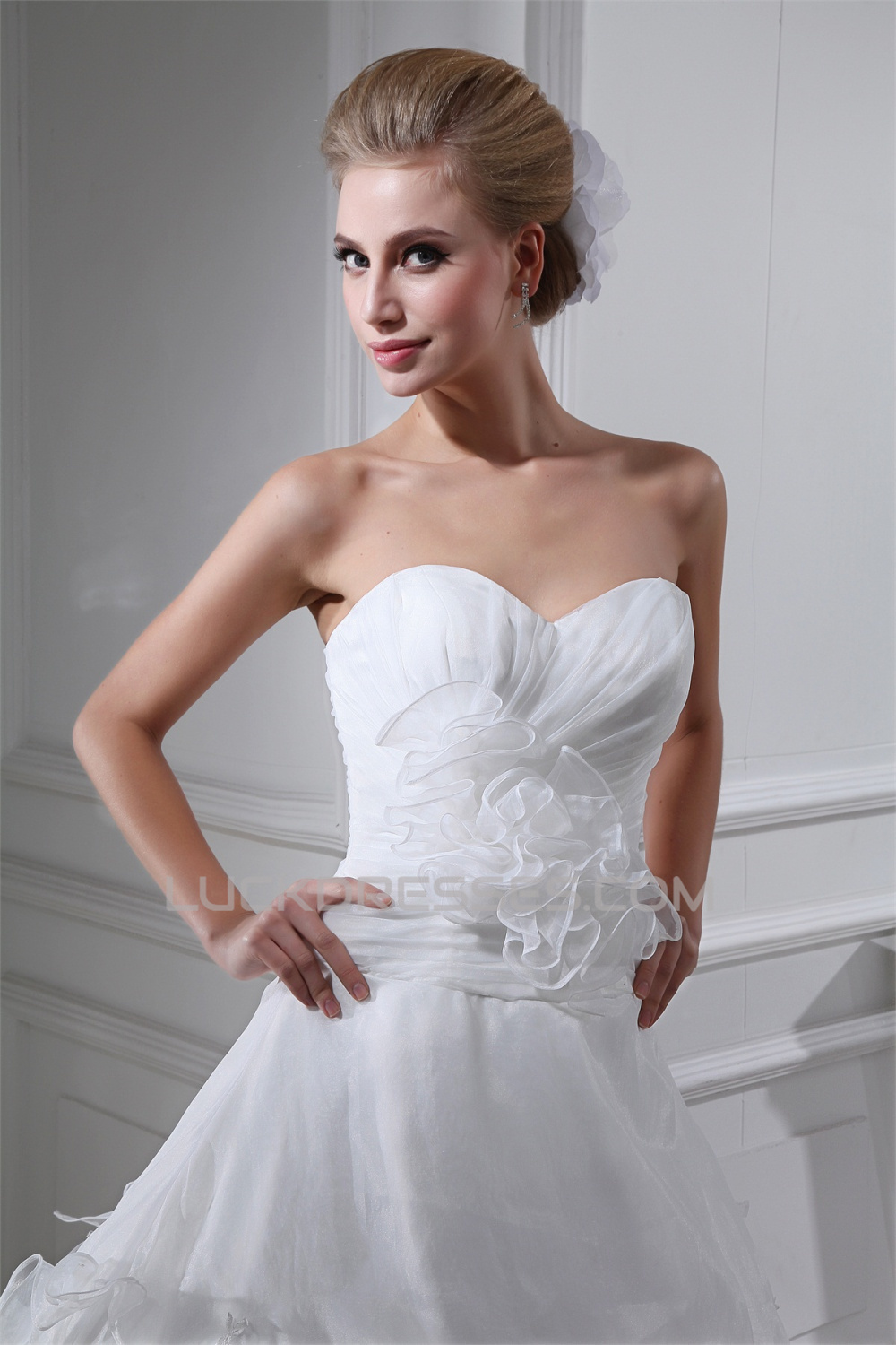 Sleeveless Sweetheart Satin Organza A-Line Sweet Wedding Dresses 2030427