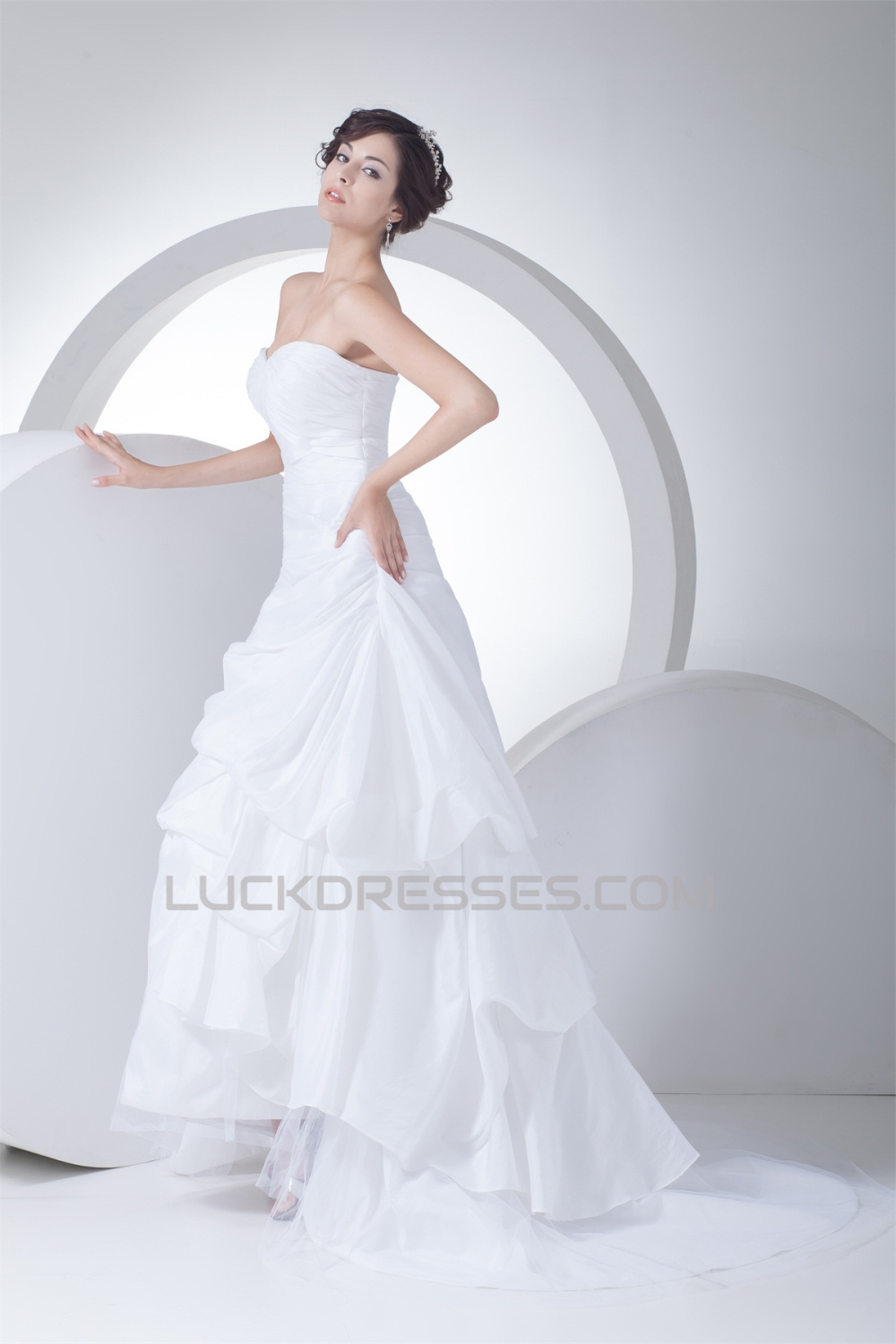 Sleeveless Sweetheart Taffeta Netting A-Line Best Wedding Dresses 2030432