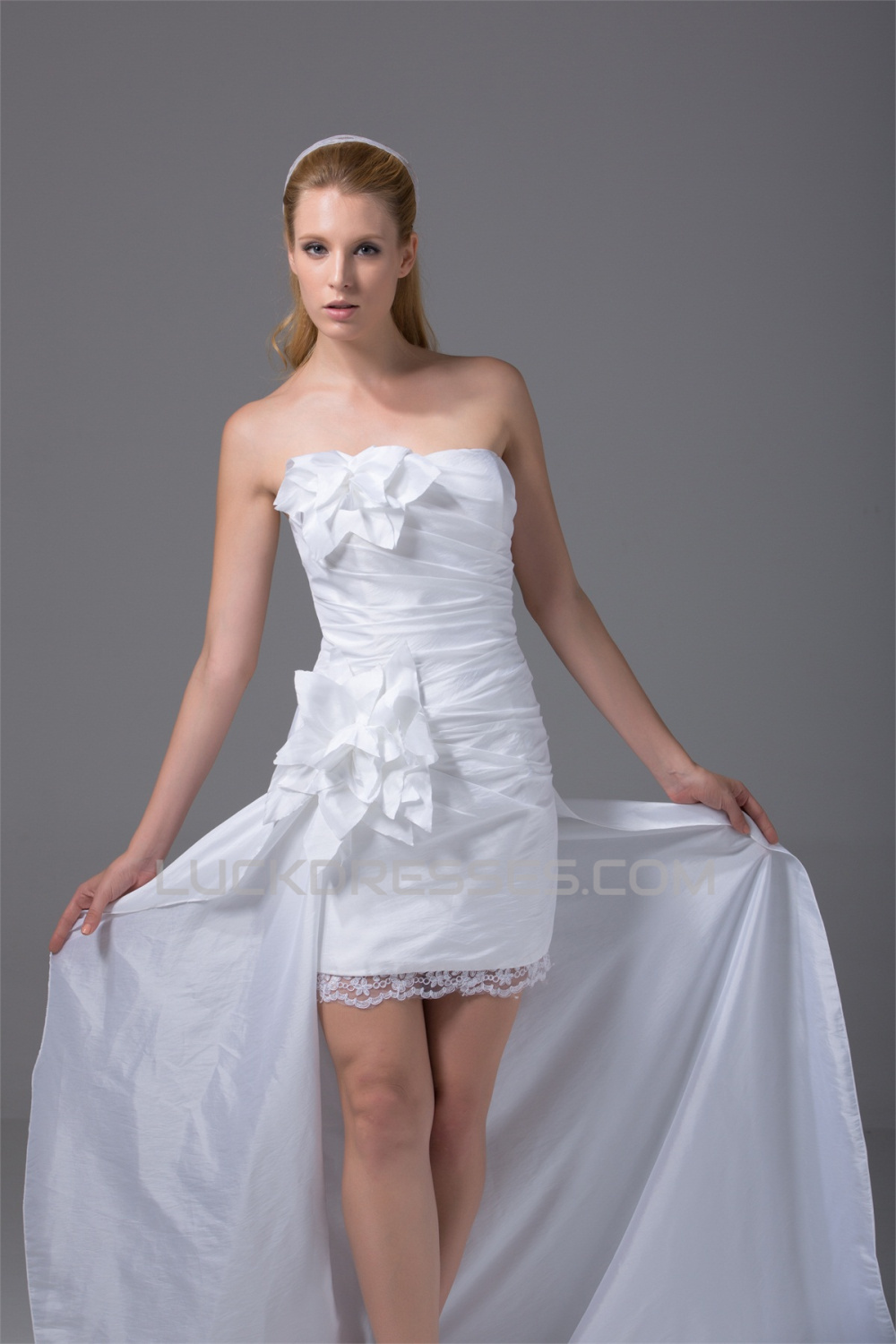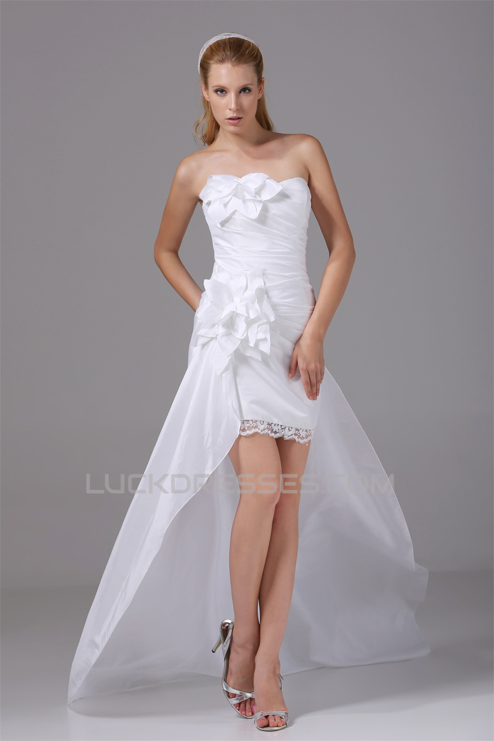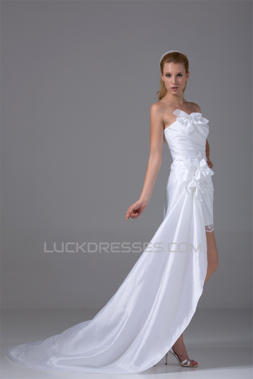 Sleeveless Taffeta Sheath/Column Handmade Flowers Reception Wedding Dresses 2031511