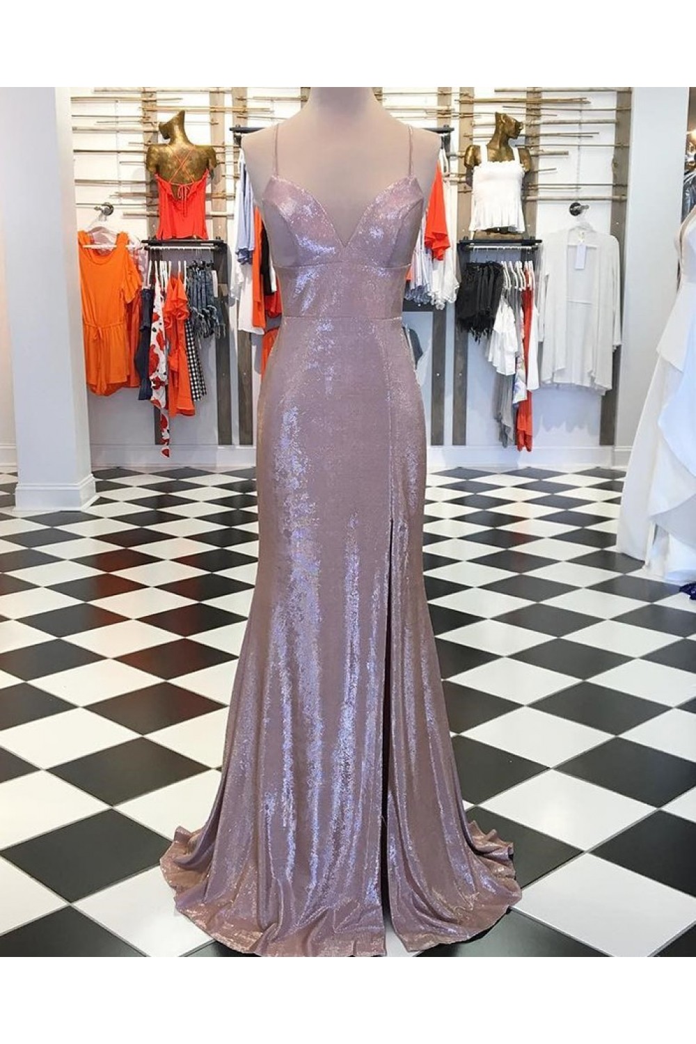 Spaghetti Straps V-Neck Long Prom Dresses Formal Evening Dresses 601215