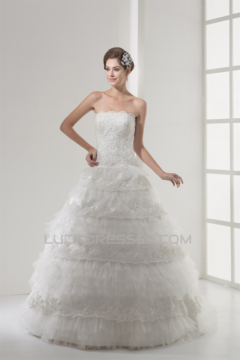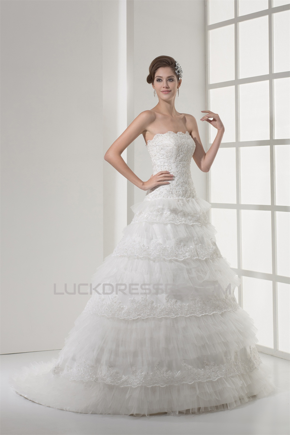 -50% Strapless A-Line Sleeveless Satin Lace Netting Most Beautiful Wedding Dresses 2030446
