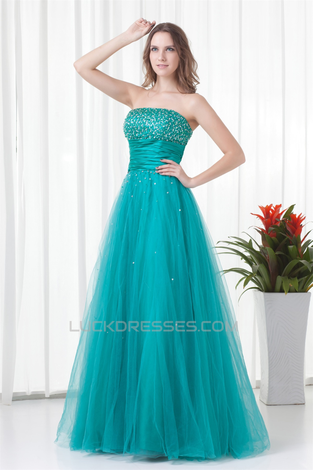 -60% Strapless A-Line Sleeveless Satin Netting Prom/Formal Evening Dresses 02020918