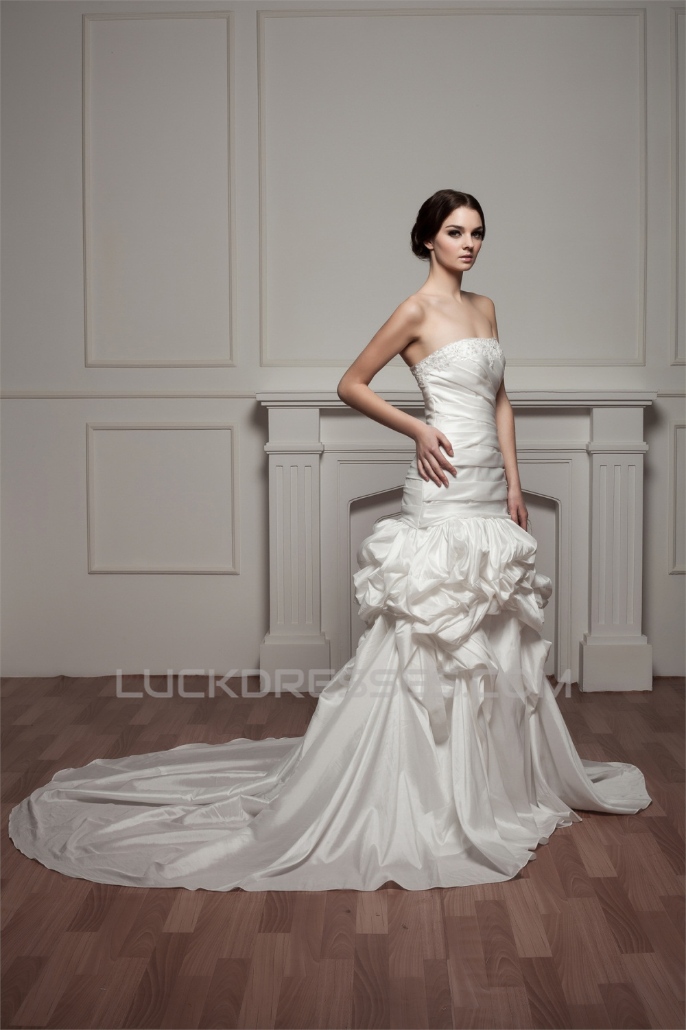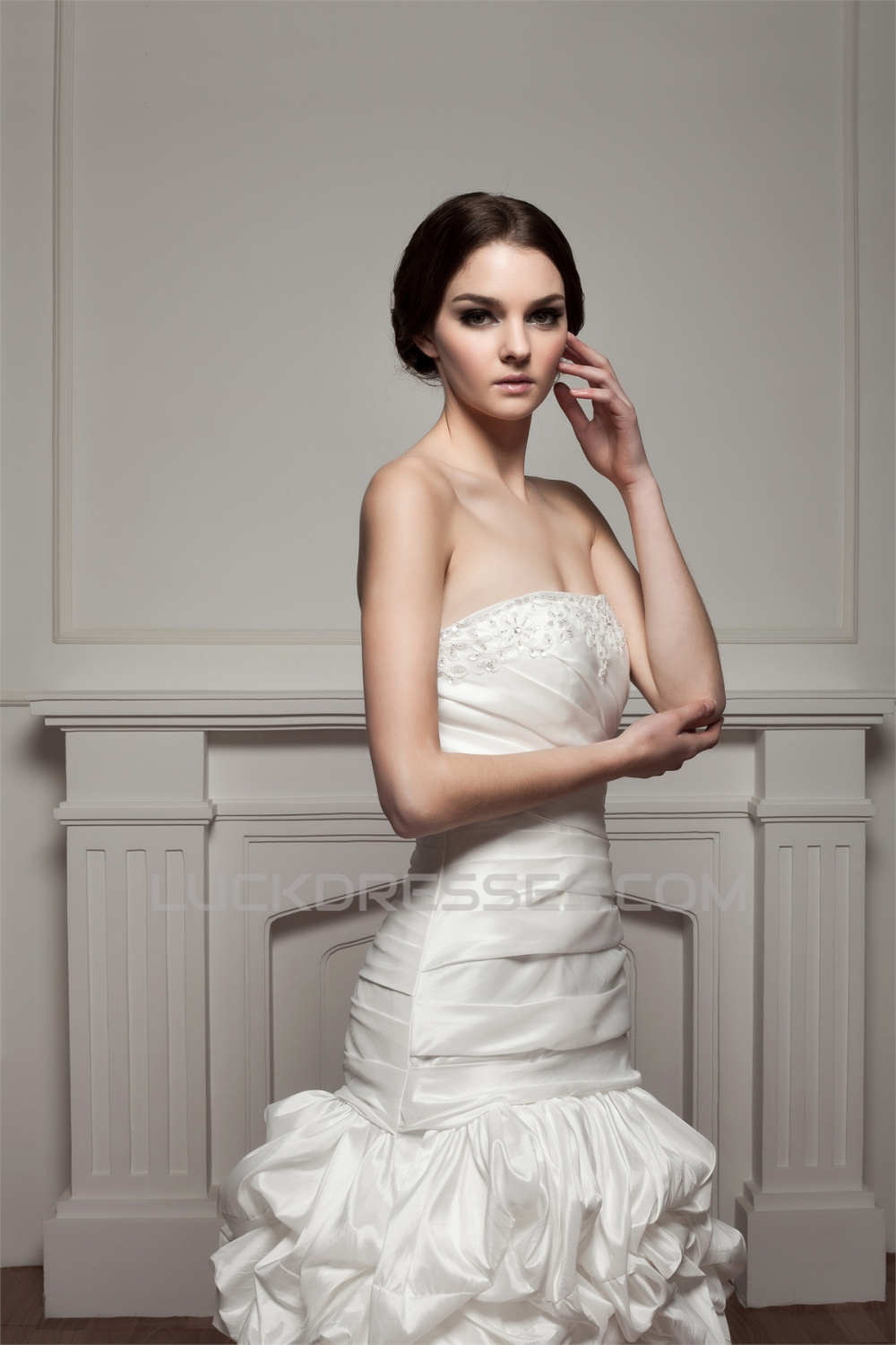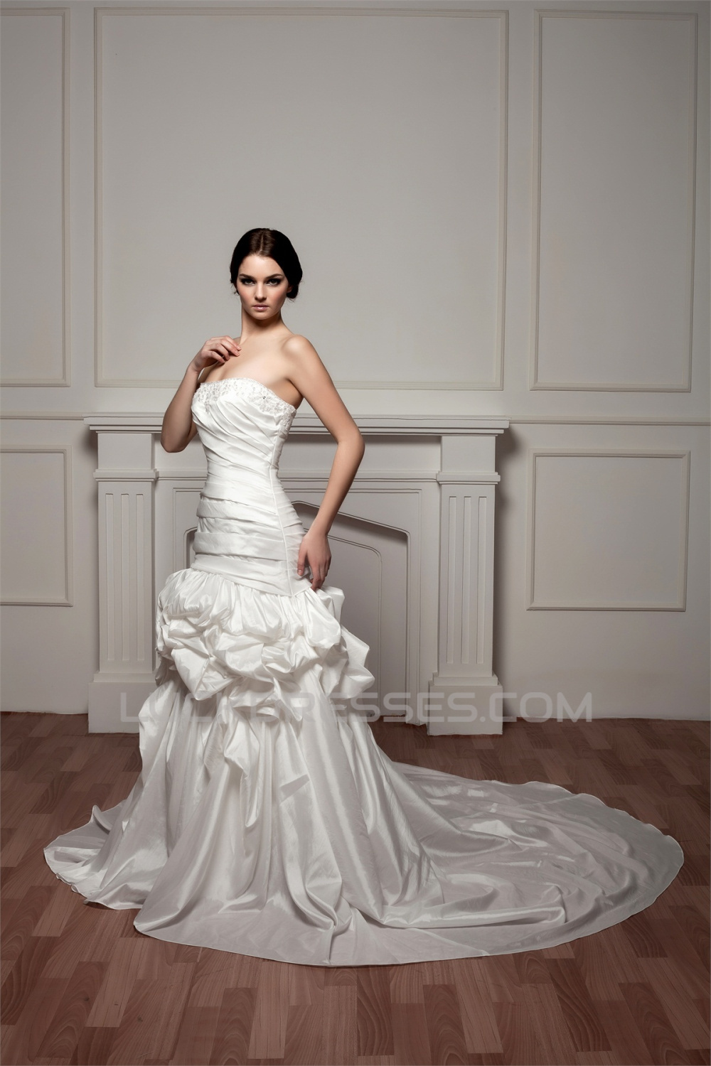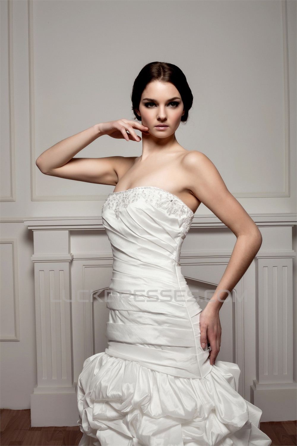 Strapless A-Line Sleeveless Satin Taffeta Beautiful Wedding Dresses 2030993