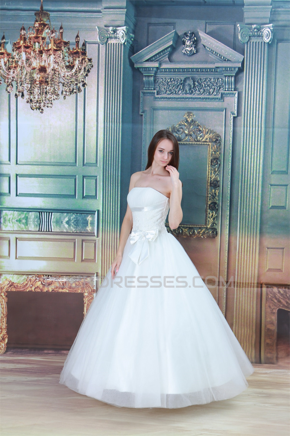Strapless Ball Gown Satin Fine Netting Sleeveless Wedding Dresses 2031363
