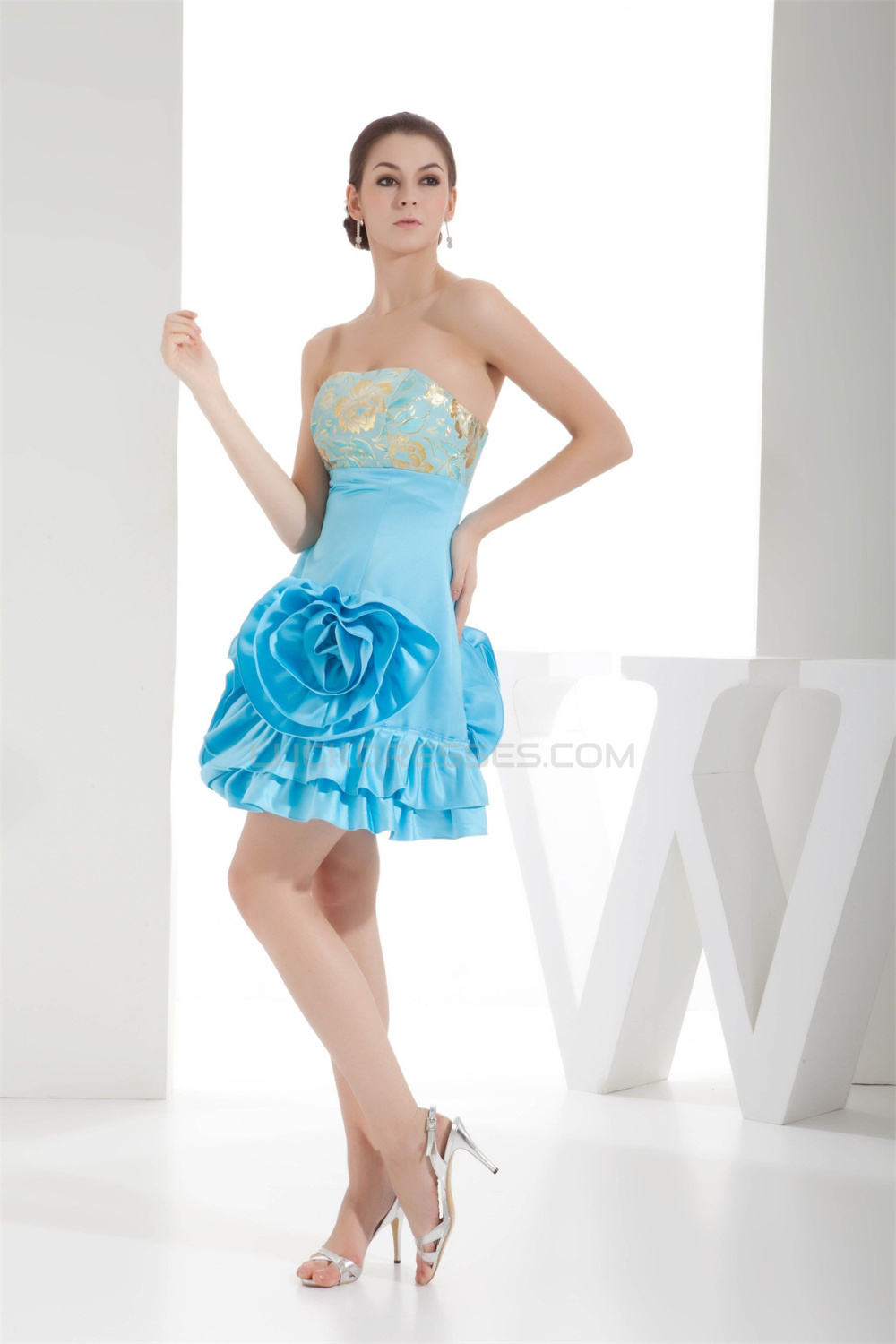 Strapless Pleats Knee-Length Sleeveless Prom/Formal Evening Dresses 02021245