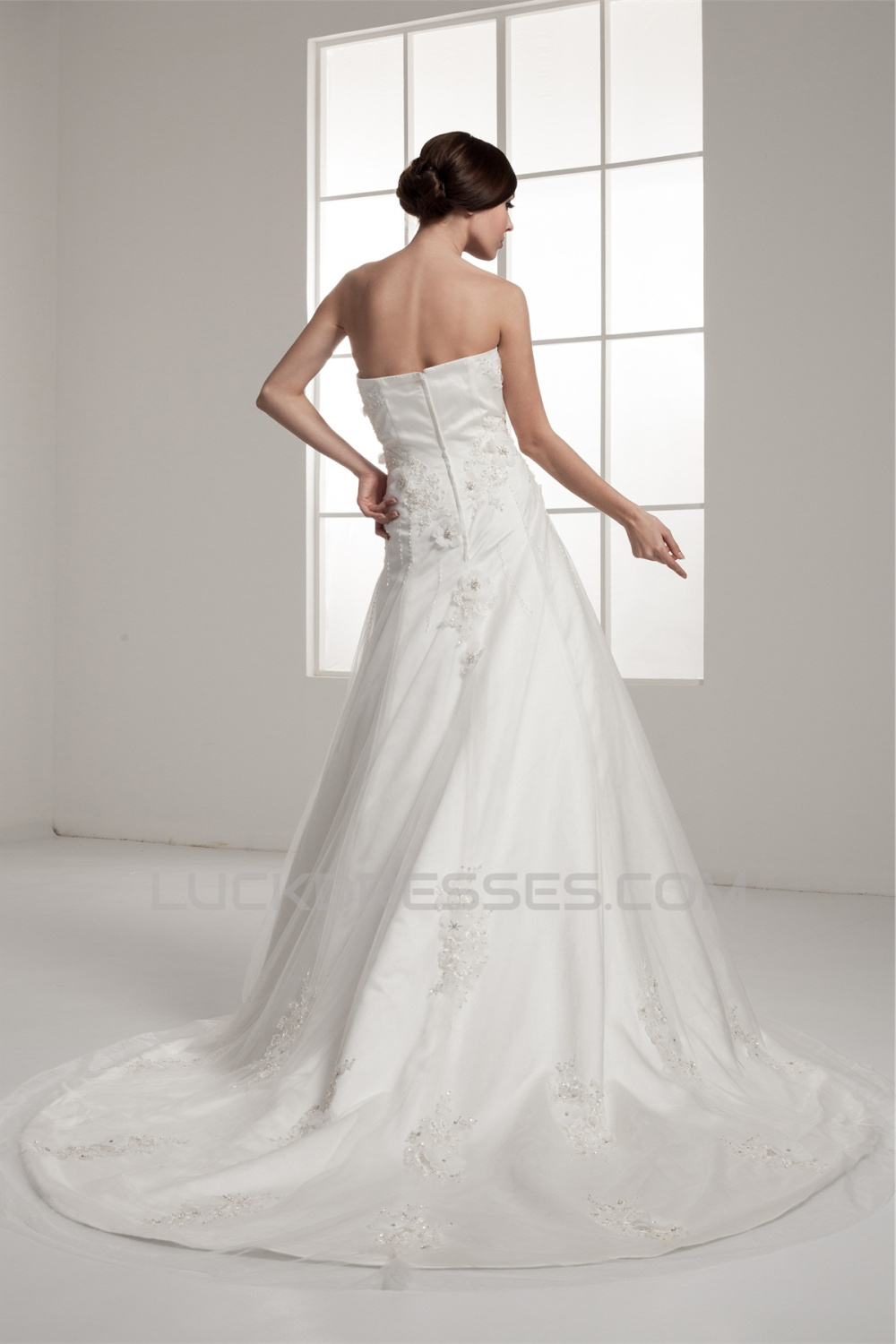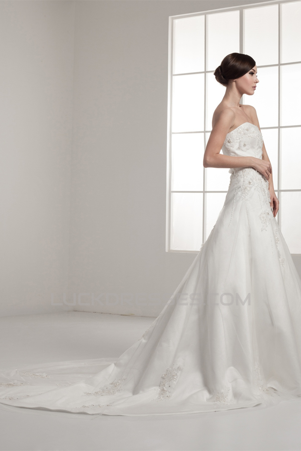 Strapless Satin A-Line Sleeveless Beautiful Beaded Wedding Dresses 2030996