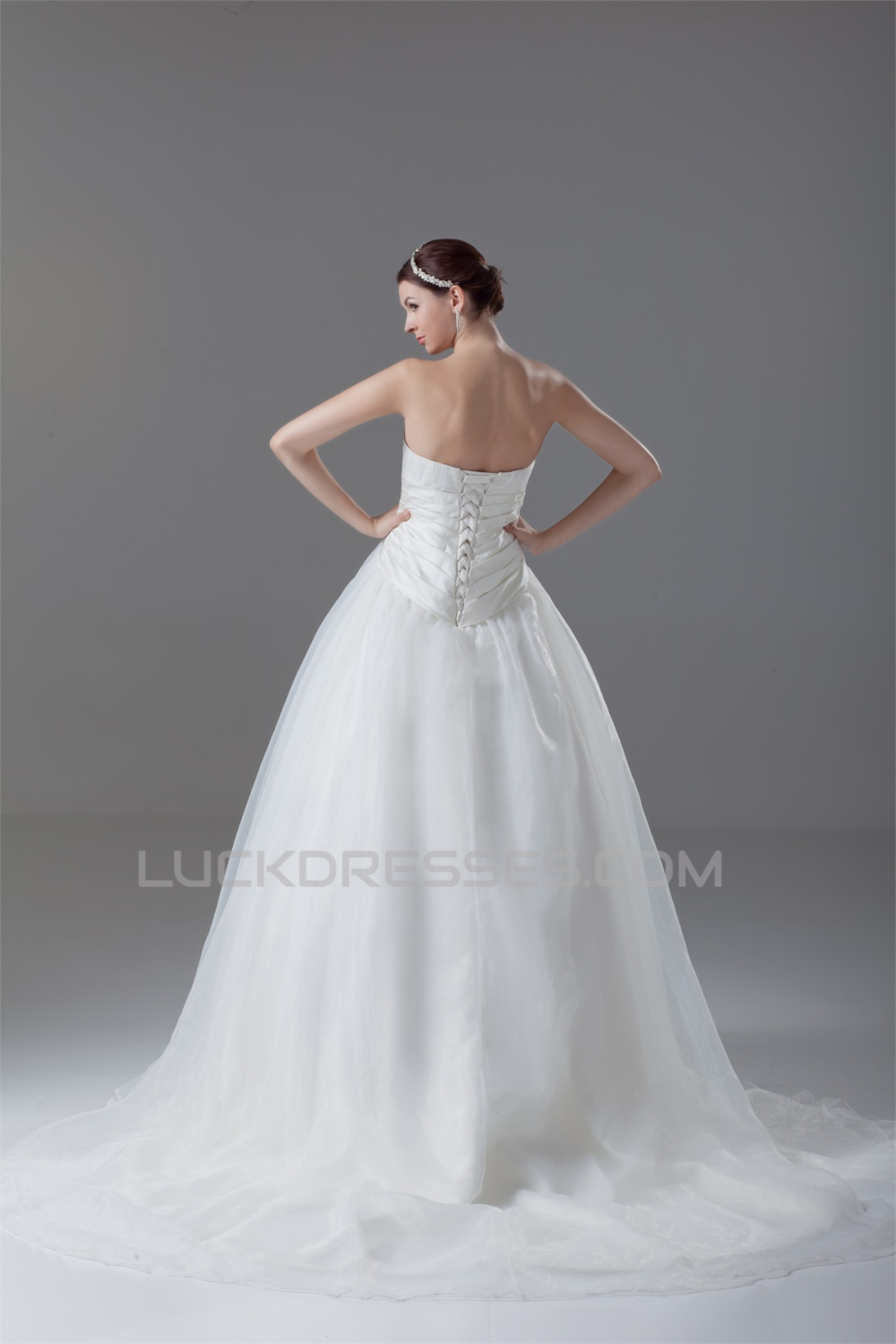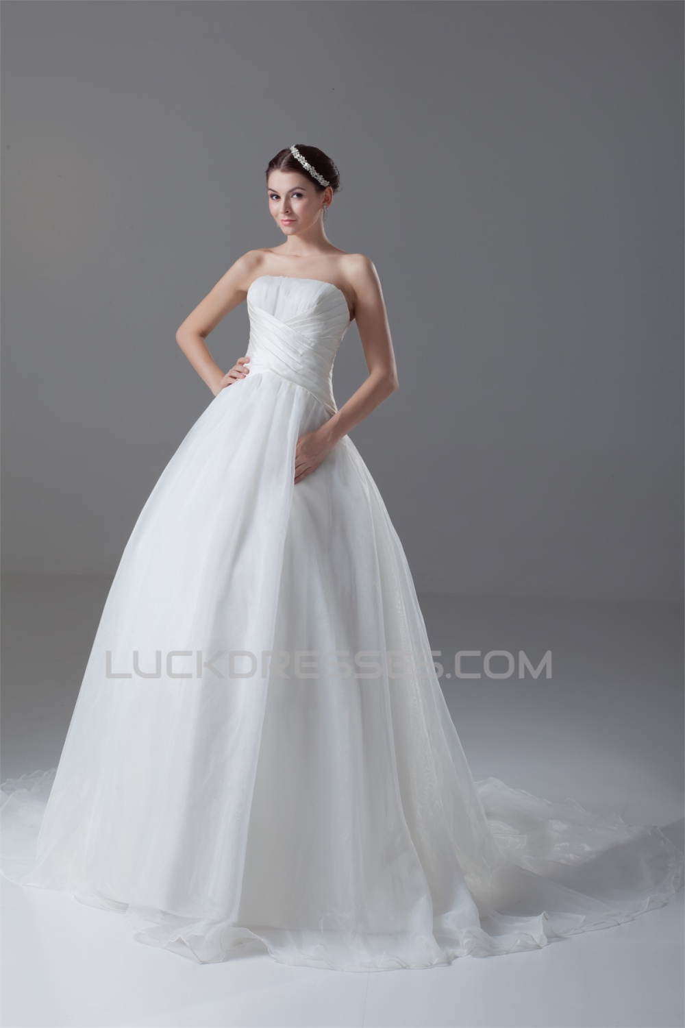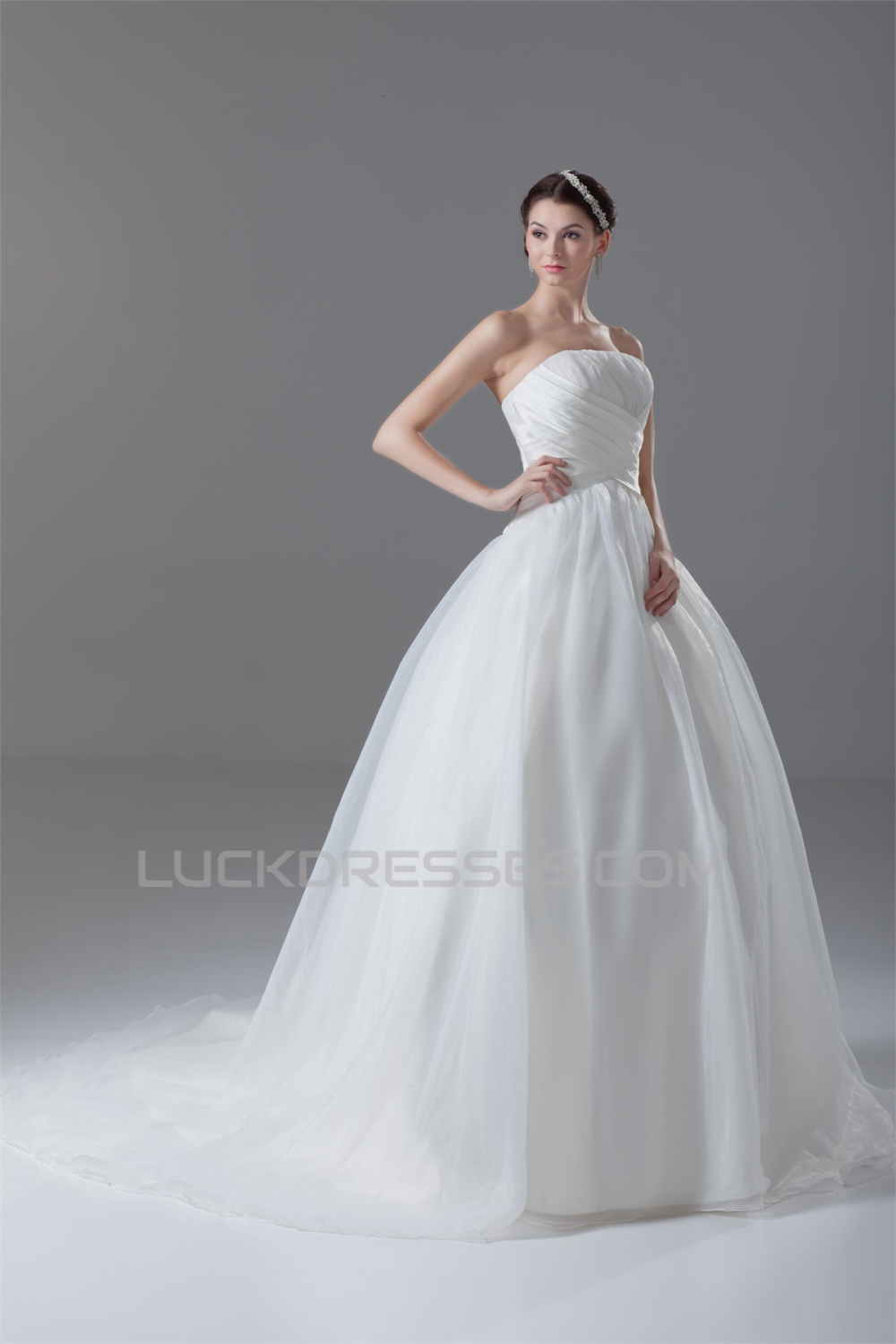 Strapless Satin Organza Sleeveless Ball Gown Wedding Dresses 2031368