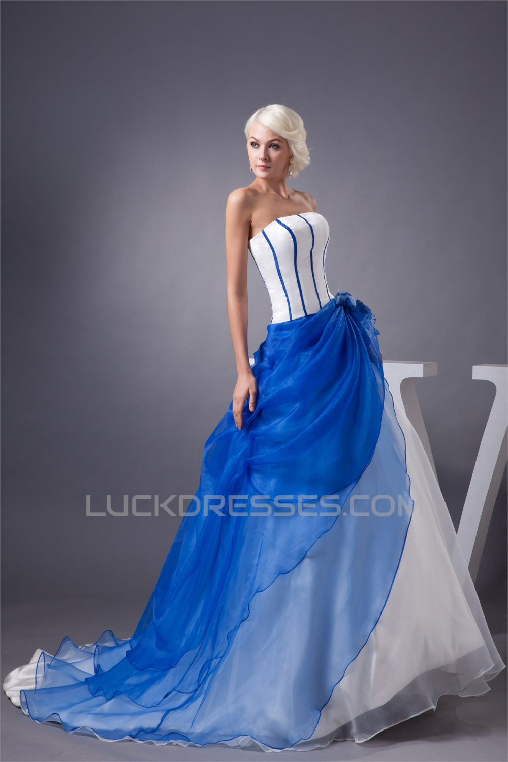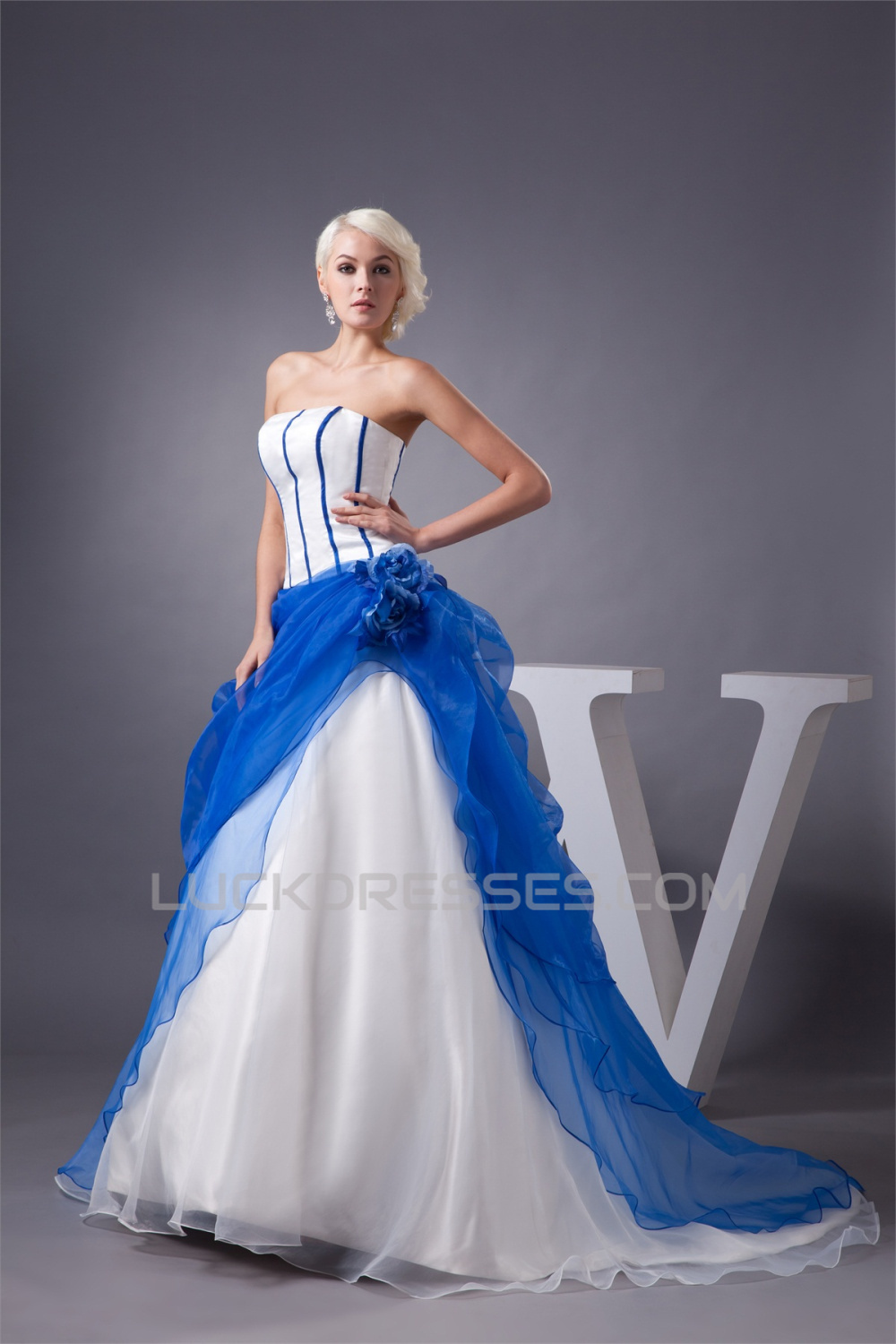 Strapless Satin Sleeveless A-Line Handmade Flowers Wedding Dresses 2030998