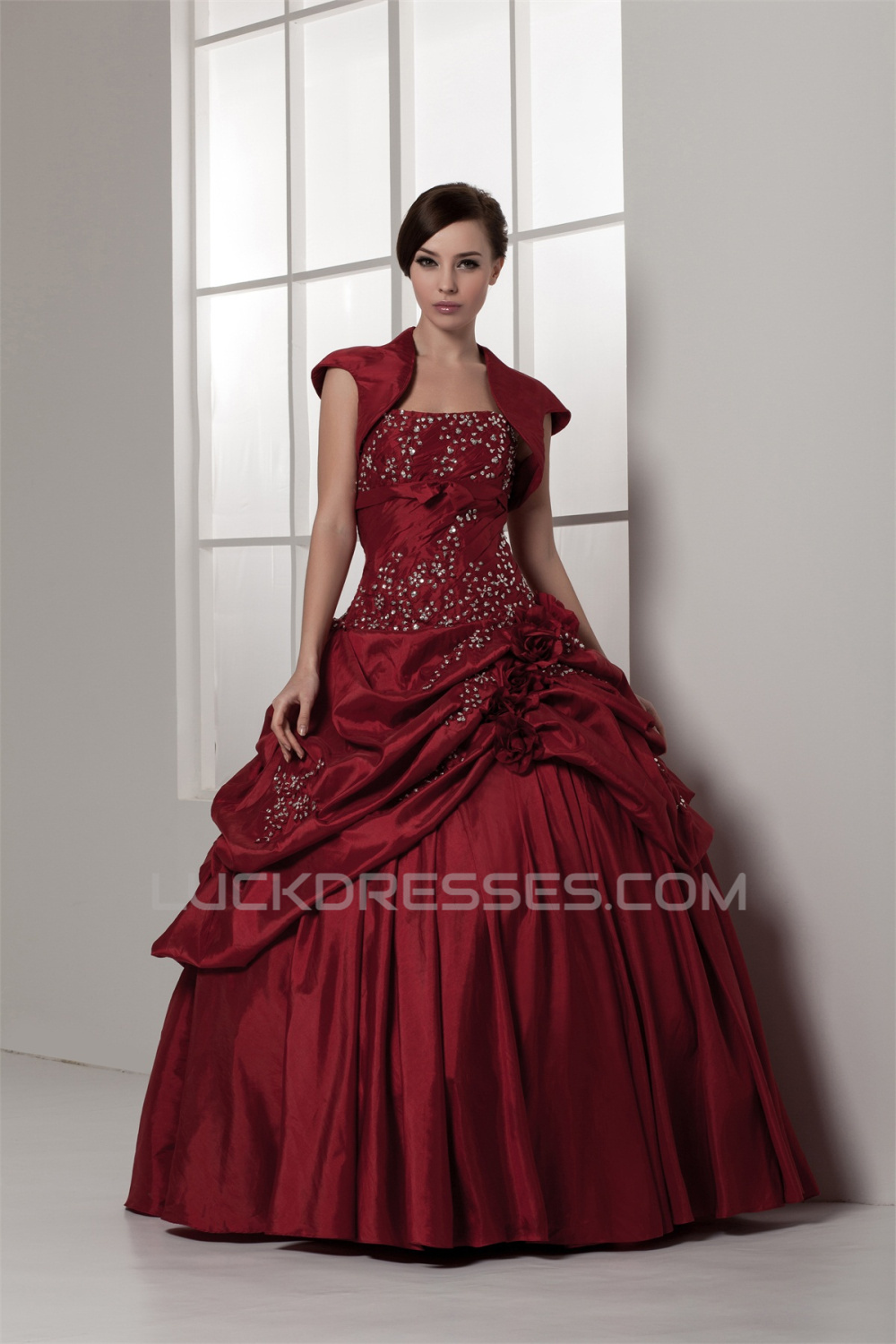 Strapless Satin Taffeta Floor-Length Beading Wedding Dresses with A Jacket 2031000