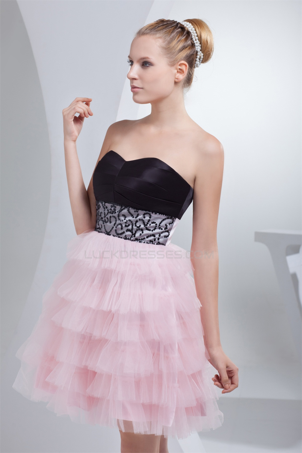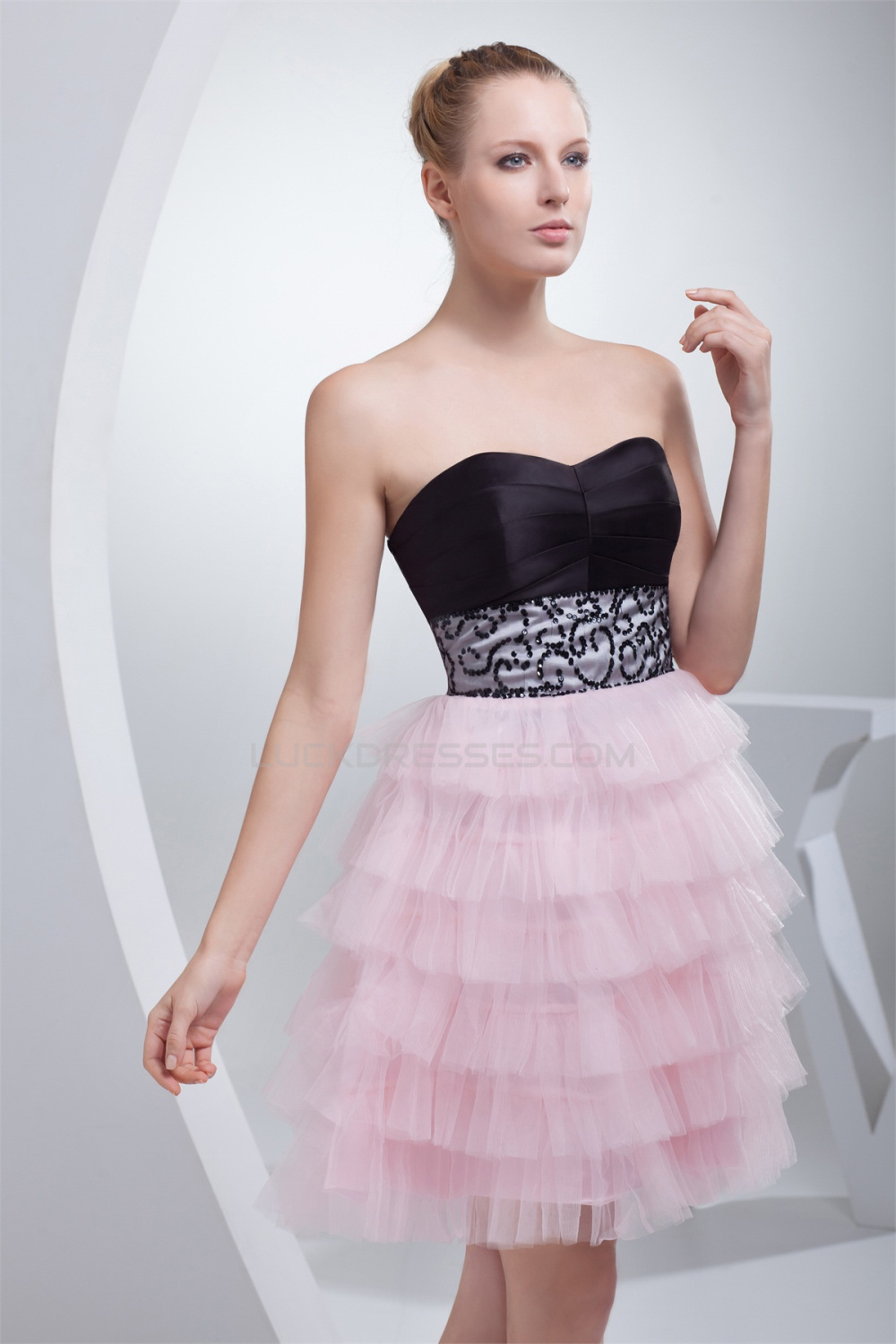 Strapless Short/Mini Sleeveless Satin Silk like Satin Fine Netting Prom/Formal Evening Dresses 02021249