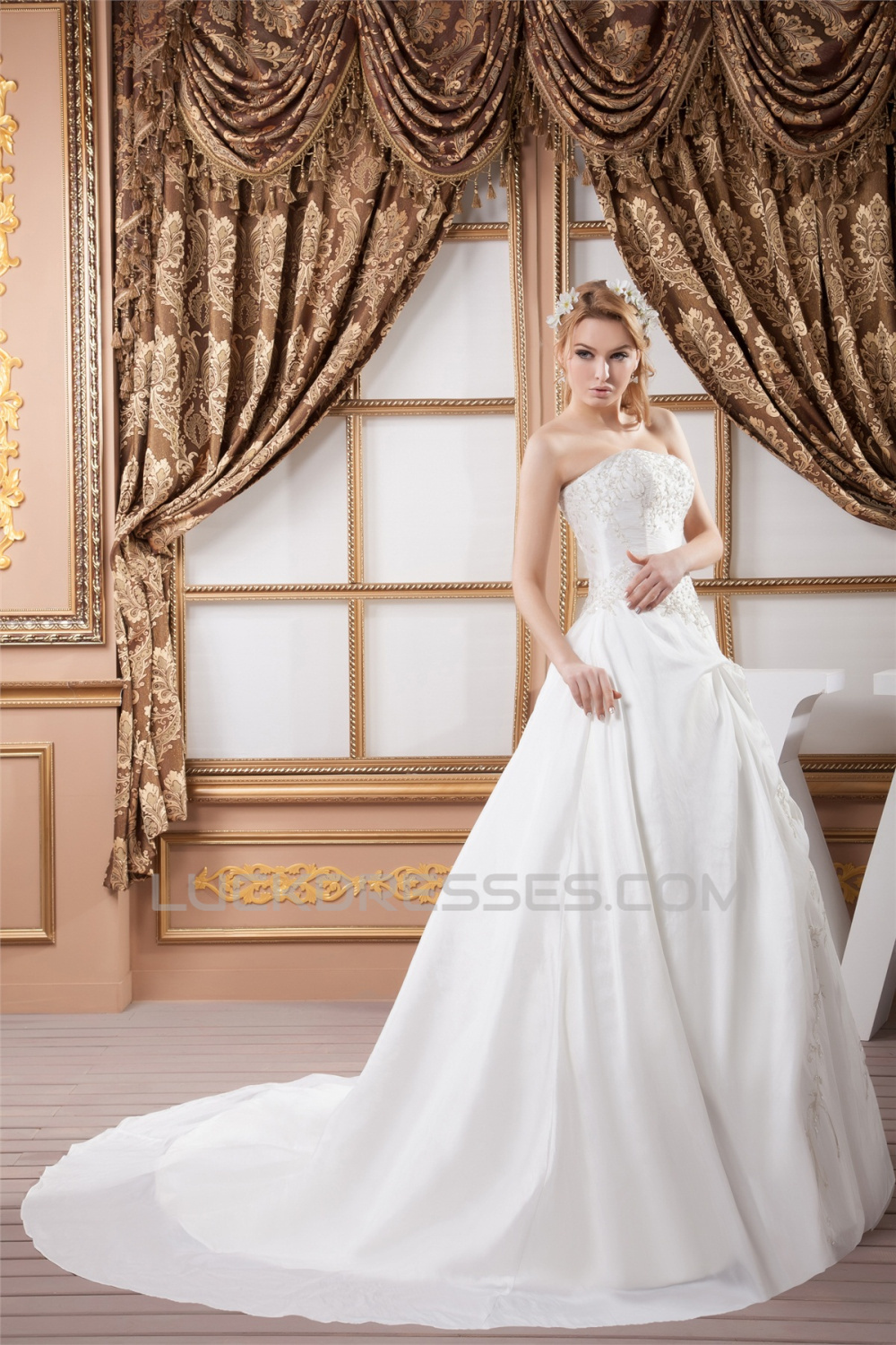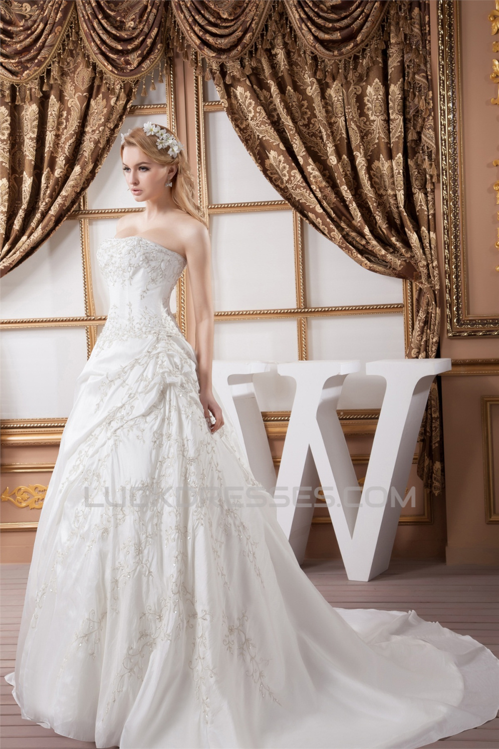 Strapless Sleeveless Ball Gown Satin New Arrival Wedding Dresses 2031005