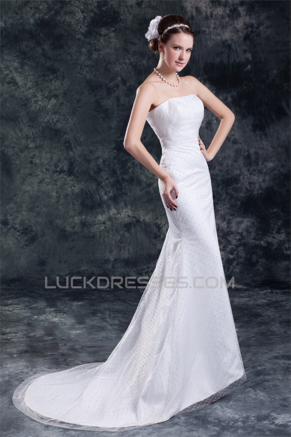 Strapless Sleeveless Mermaid/Trumpet Satin Fine Netting Wedding Dresses 2031372