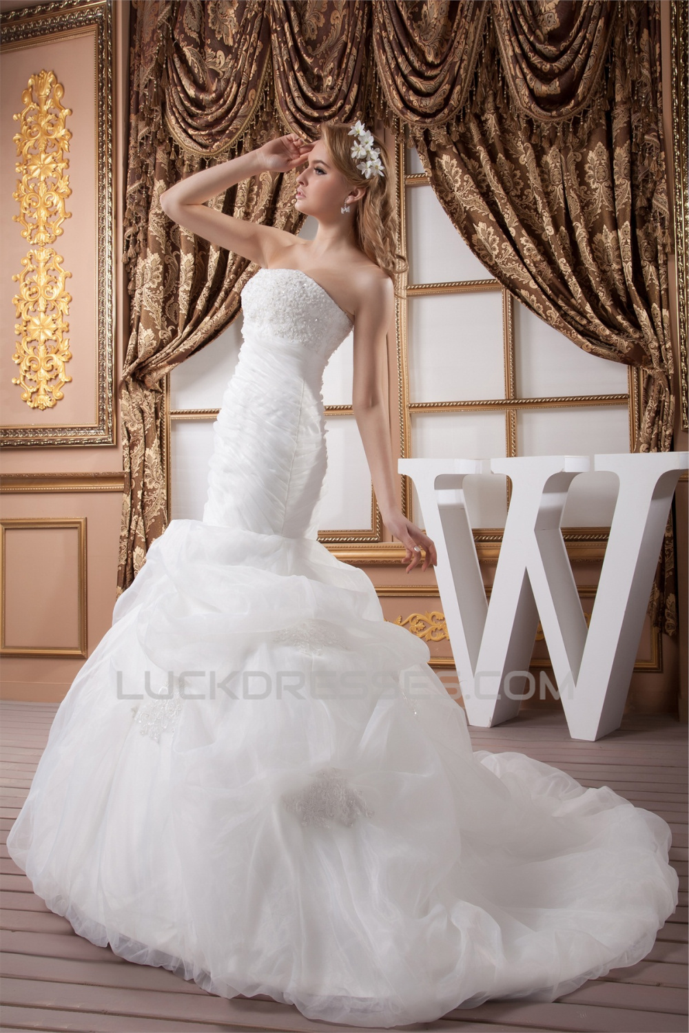 Strapless Sleeveless Satin Mermaid/Trumpet Wedding Dresses 2031008