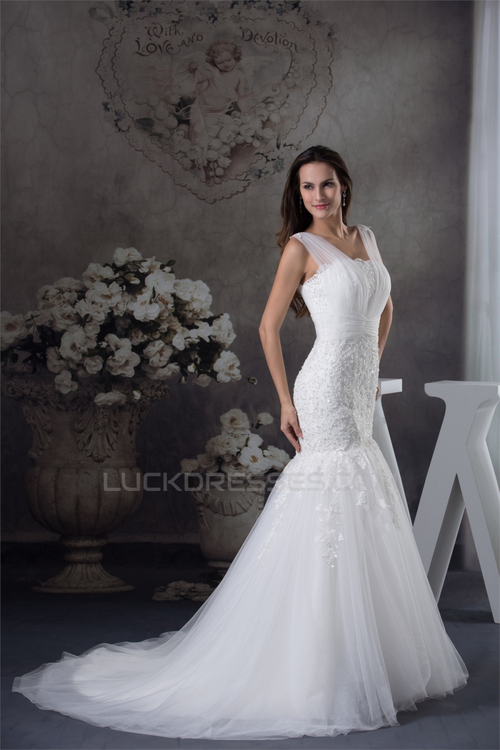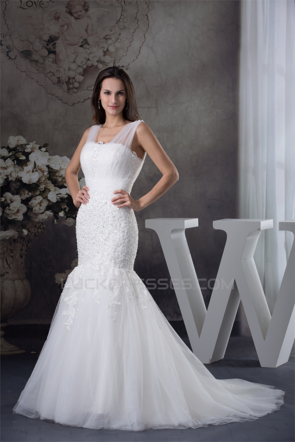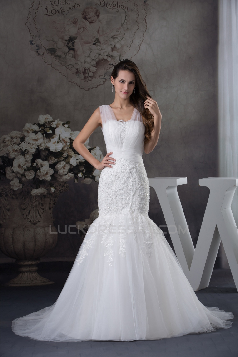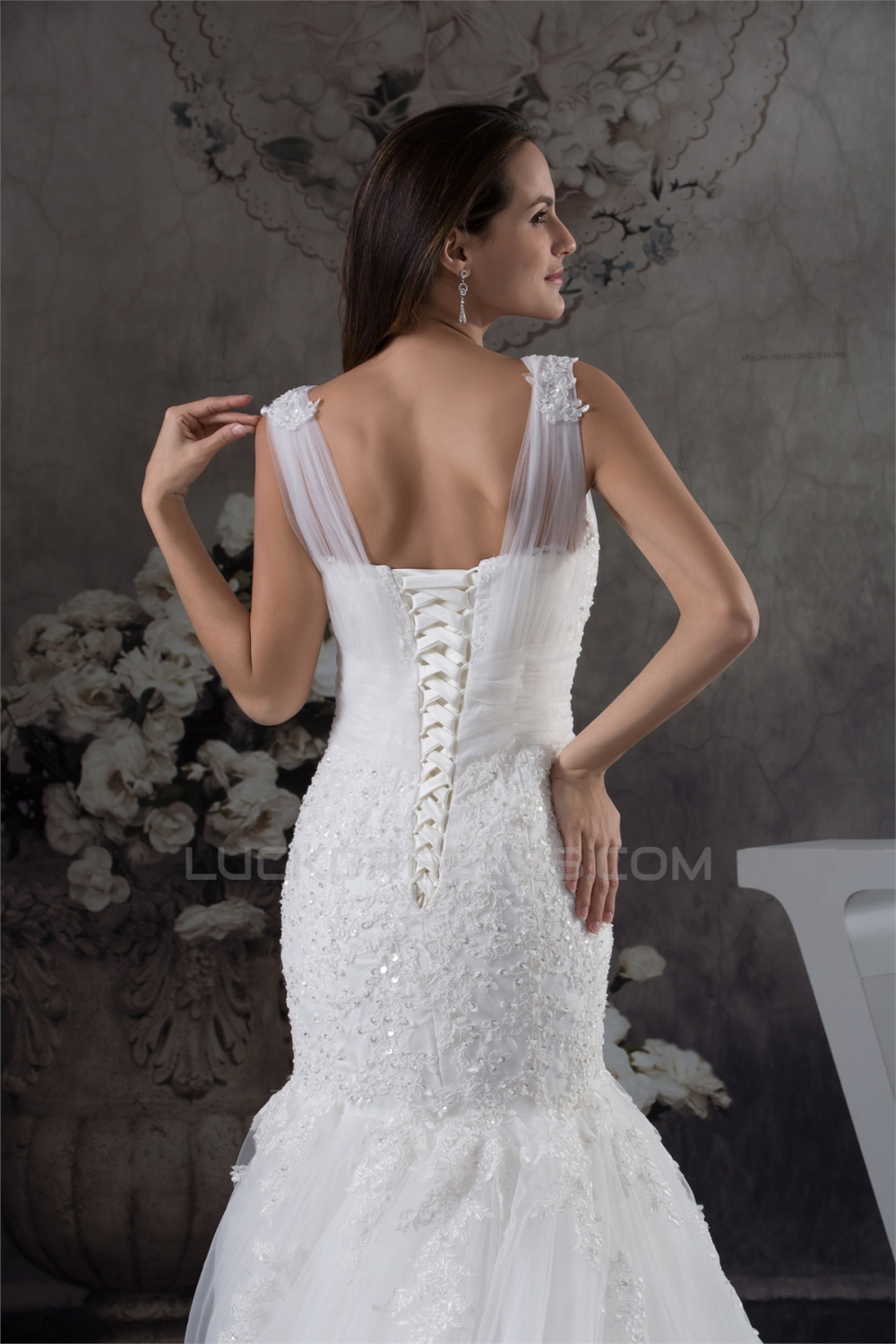 Straps Satin Lace Fine Netting Mermaid/Trumpet Sweet Wedding Dresses 2030463