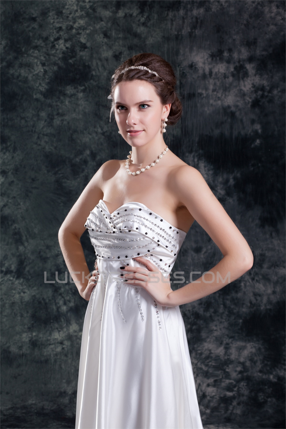 -50% Sweetheart Elastic Woven Satin Sheath/Column Beaded Wedding Dresses 2031383