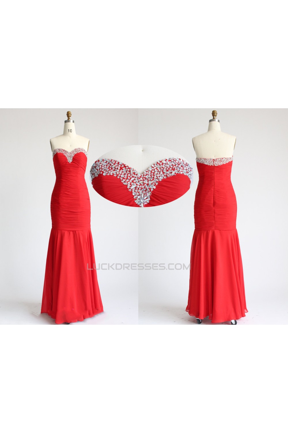 Sweetheart Long Red Beaded Chiffon Prom Evening Formal Dresses ED011091