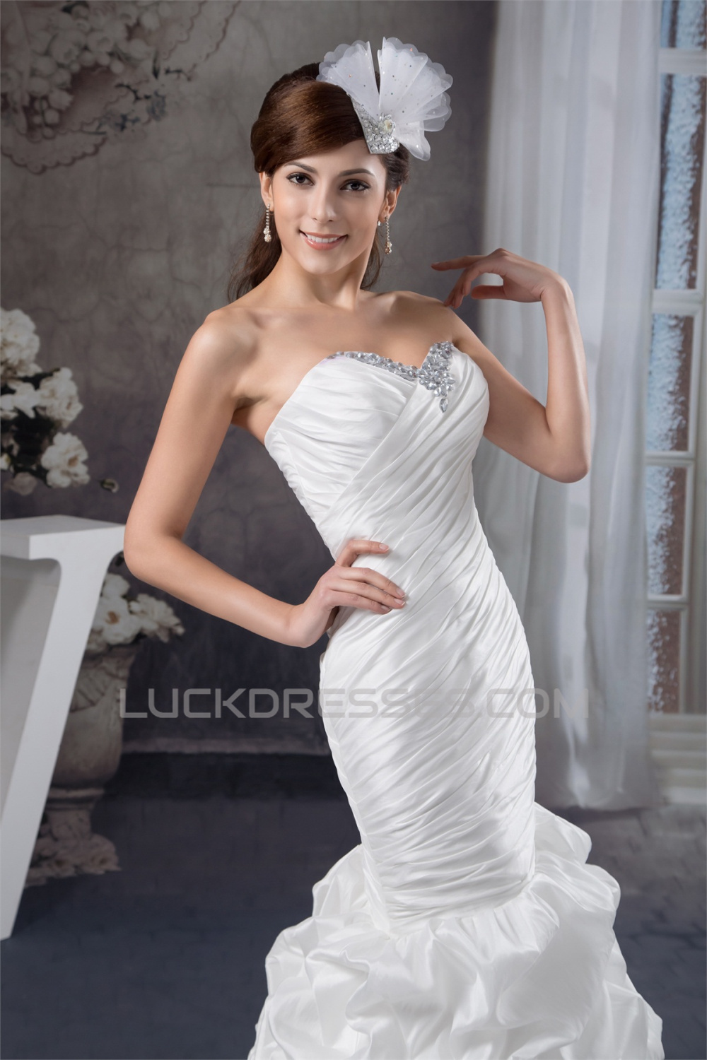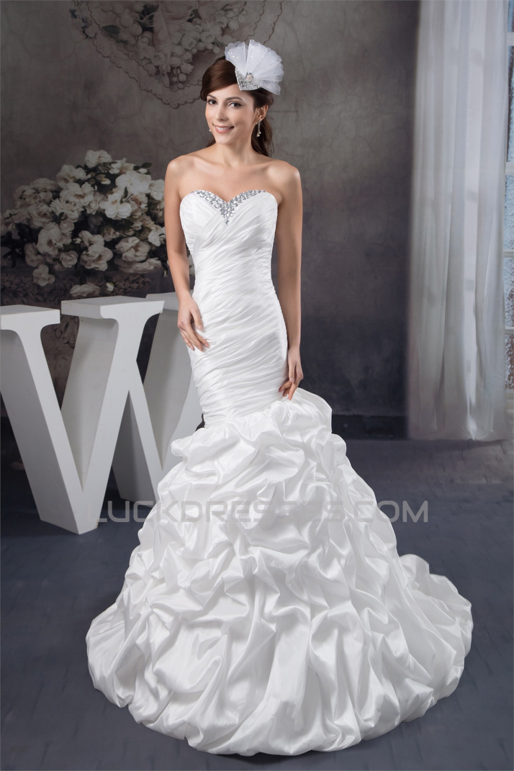 -50% Sweetheart Mermaid/Trumpet Sleeveless Satin Taffeta Beaded Wedding Dresses 2031018