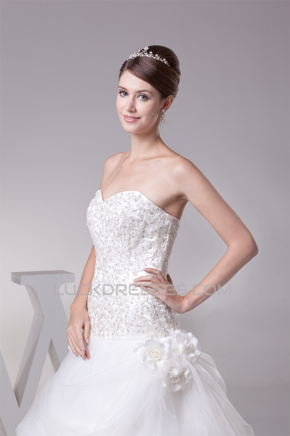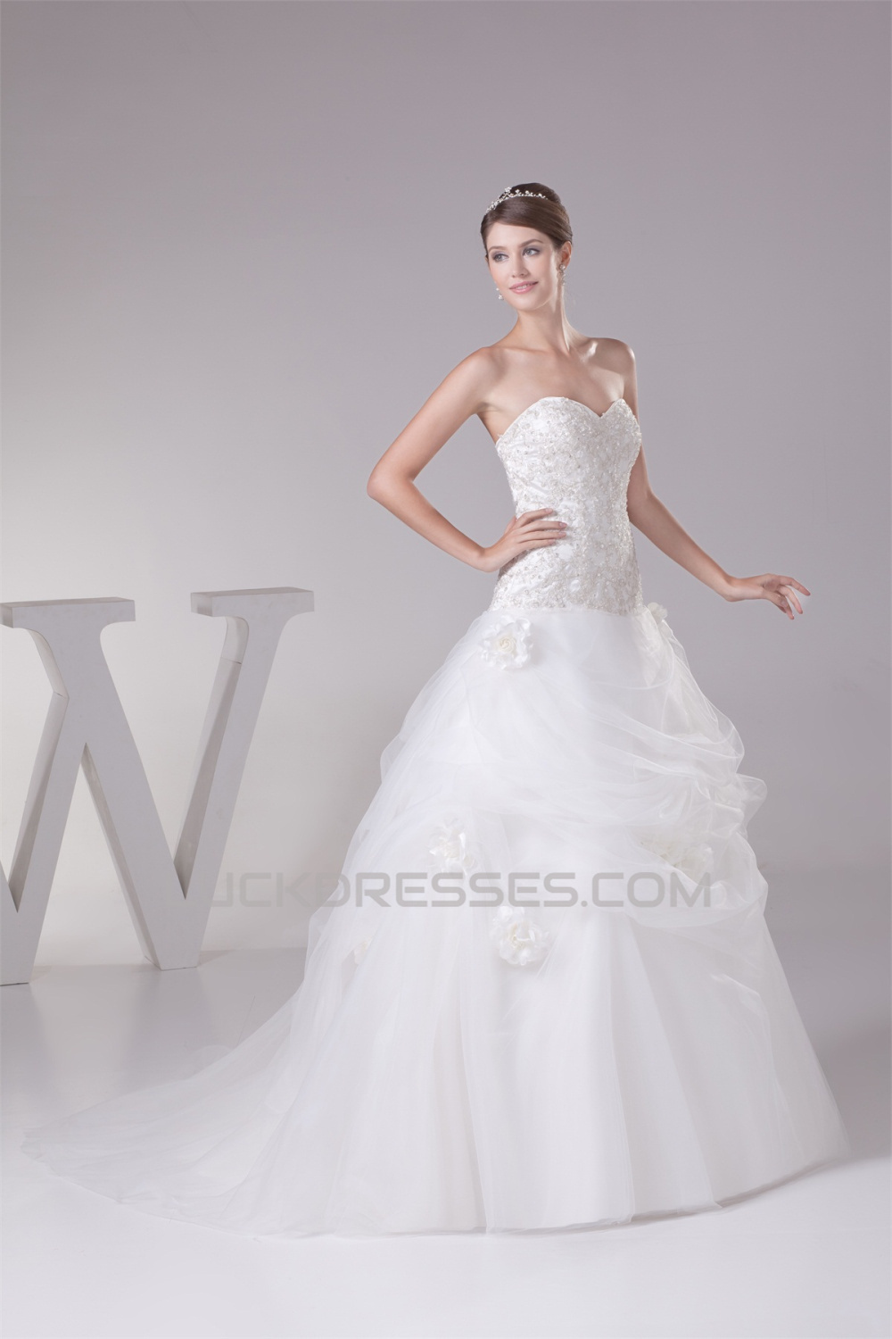 Sweetheart Princess Satin Fine Netting Lace Sleeveless New Arrival Wedding Dresses 2030482